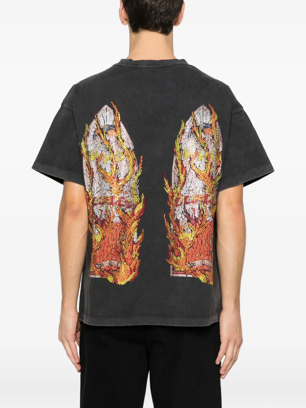 Футболка с пламенем из страз Who Decides War, черный 47 920₽