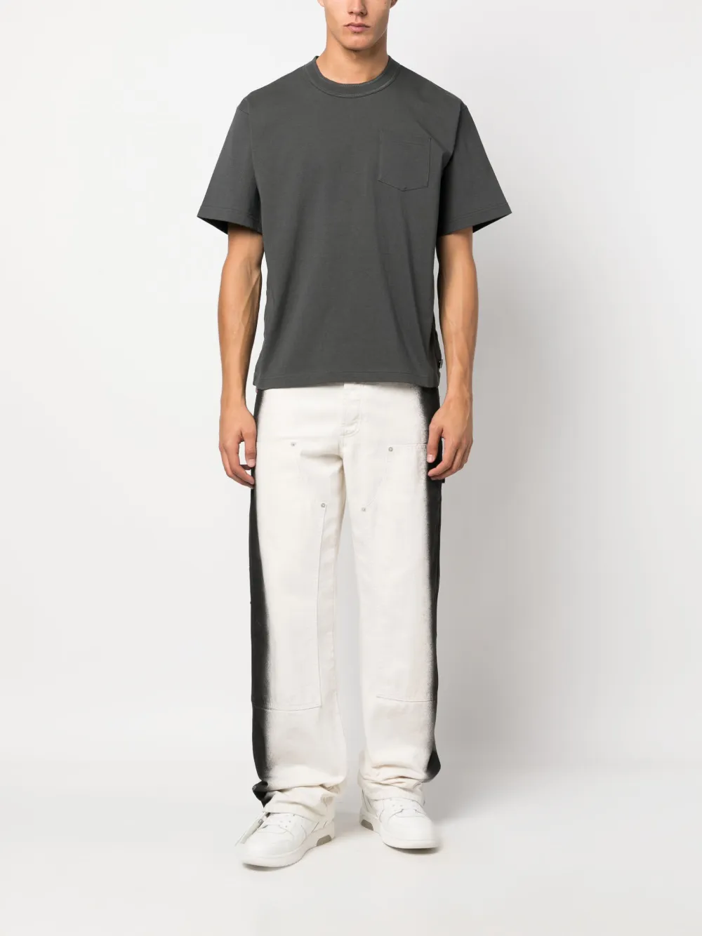 Темно-серый, хлопок, круглый вырез, короткие рукава, боковые разрезы, завязки по бокам и прямой подол.