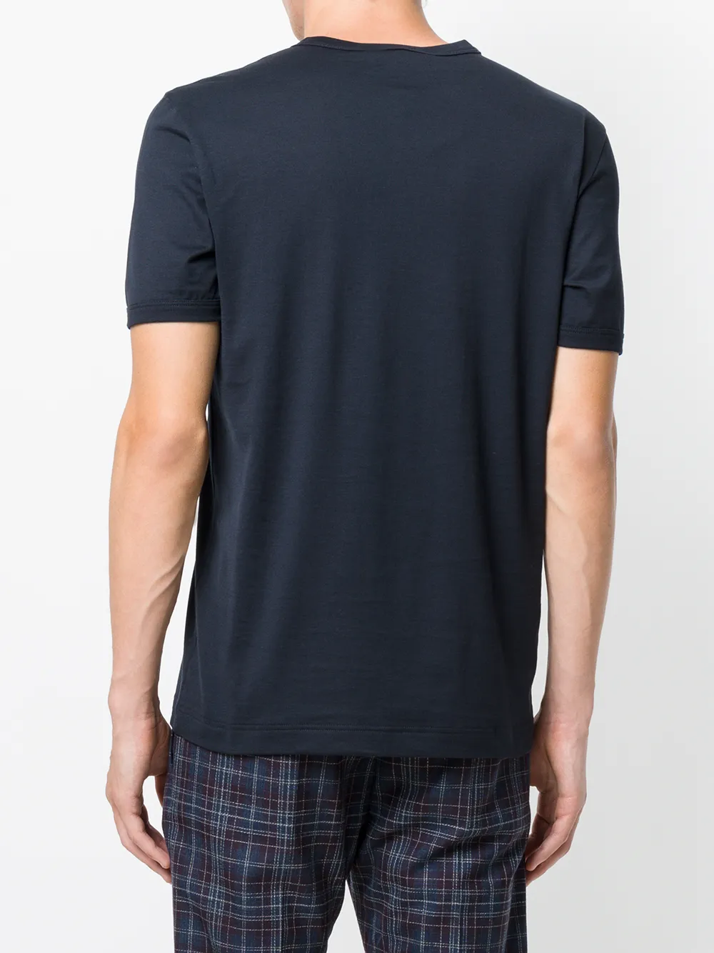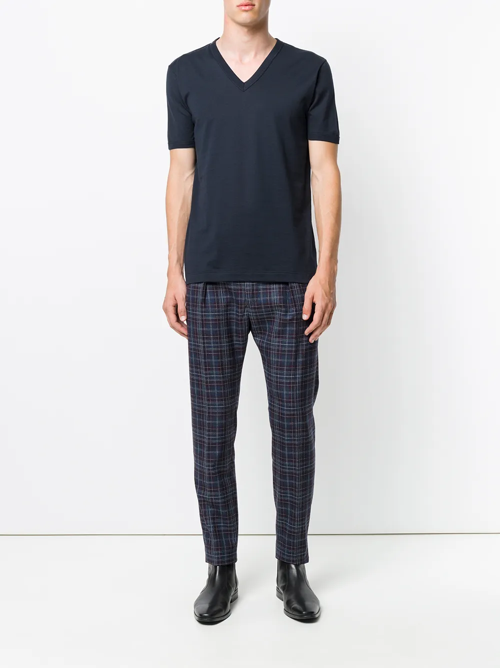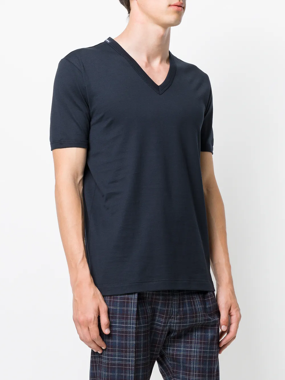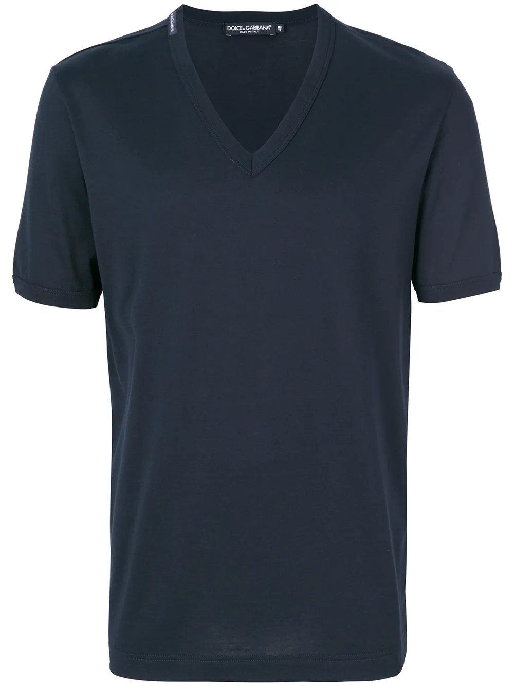 Темно-синяя хлопковая футболка с V-образным вырезом от Dolce & Gabbana. Короткие рукава, глубокий V-образный вырез.