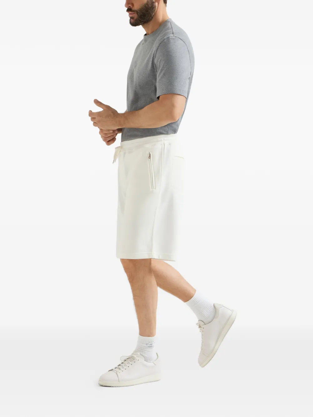 Шорты с кулиской и карманом на молнии Brunello Cucinelli, белый