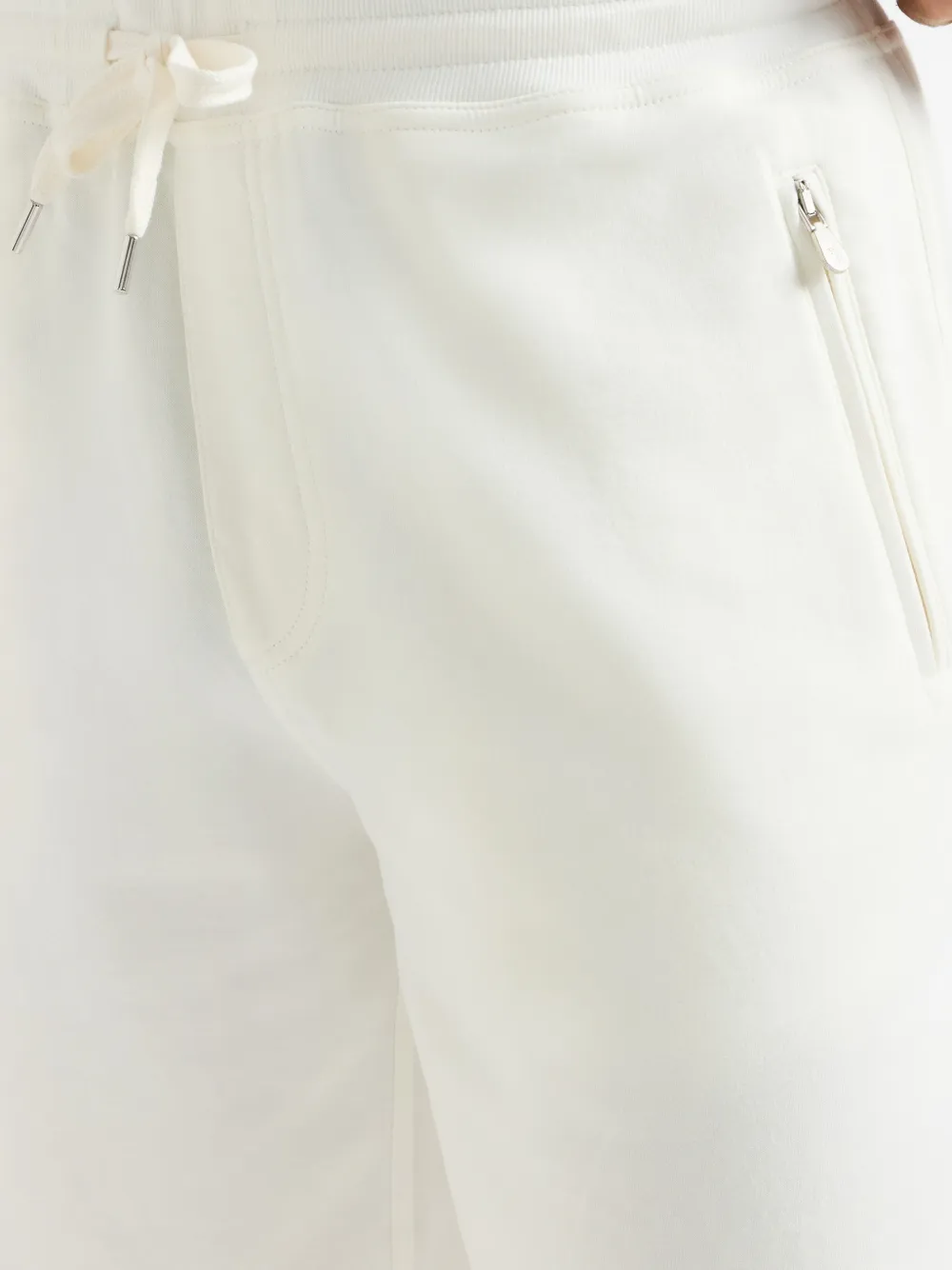 Оф-вайт (цвет слоновой кости), фактура "френч терри", шнурок для застёжки, карман на молнии, задний карман