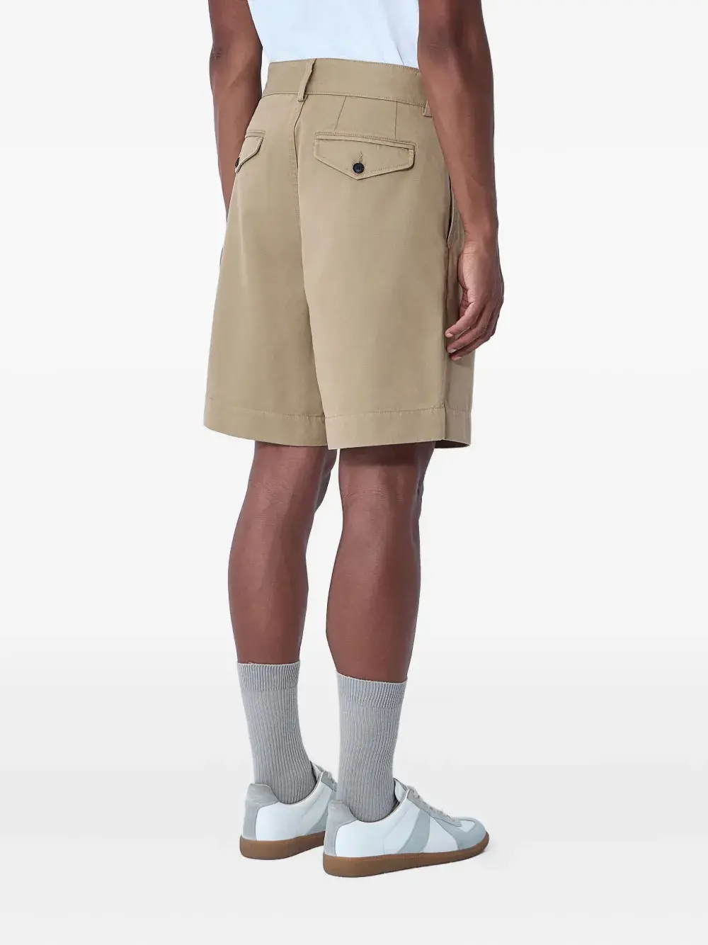 Хаки-бежевый хлопок застежка на пуговицах шлевки для ремня отделка складками боковые прорезные карманы задние карманы с клапанами