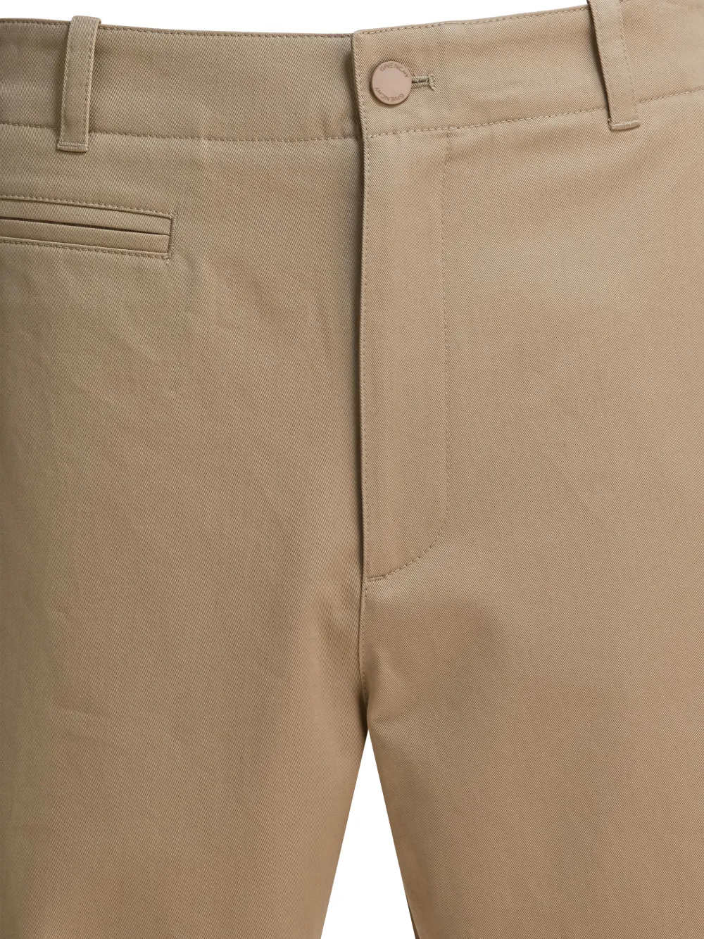 Бежевый логотипный нашивка, застежка на пуговицы, шлевки для ремня, два задних кармана, боковые карманы