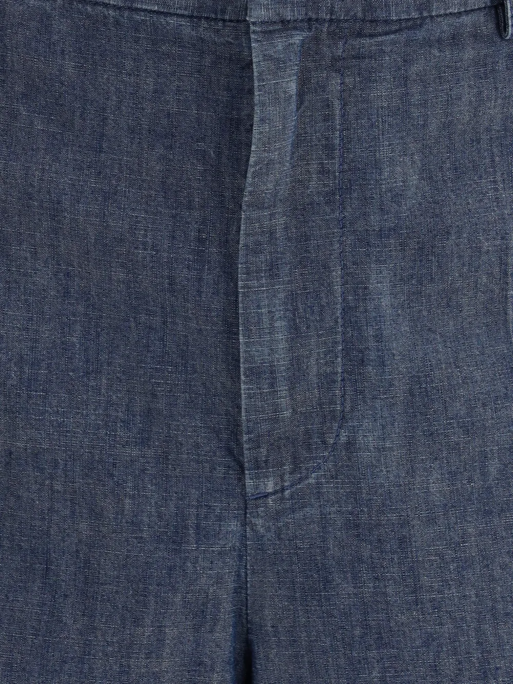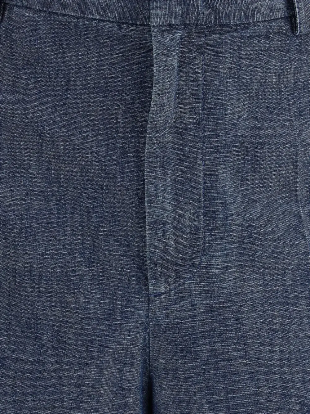 Синие шлевки для ремня, скрытая застежка, задние карманы, боковые карманы, стрелки
