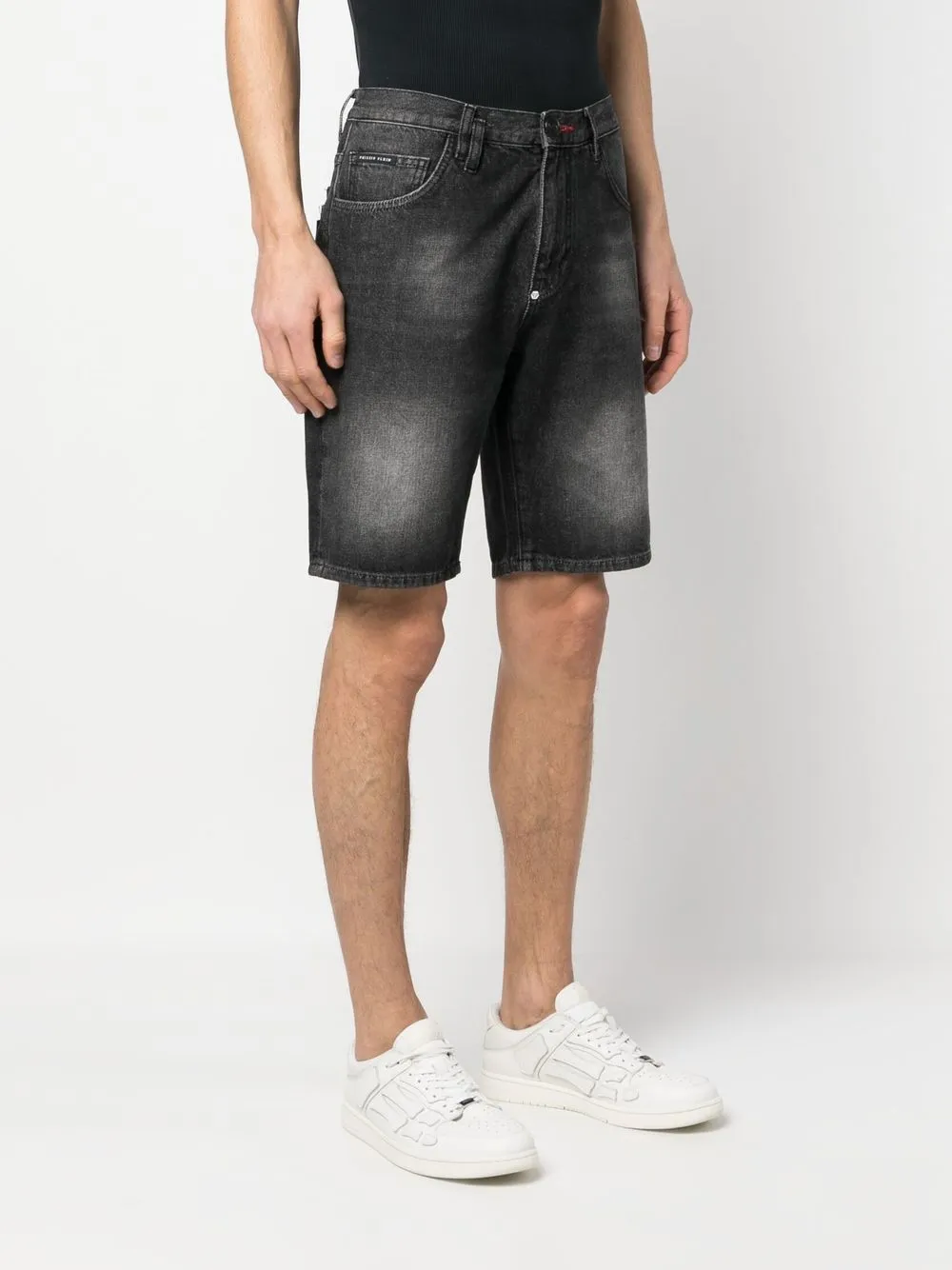 Выстиранные джинсовые шорты Philipp Plein, черный
