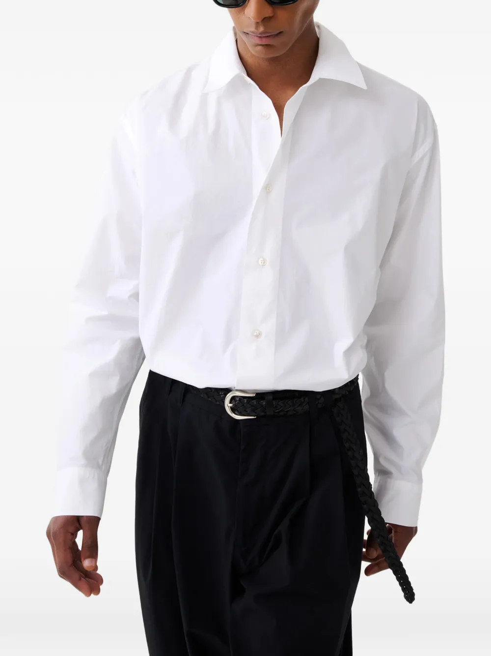 Белая рубашка с застёжкой на пуговицы, длинными рукавами и классическим воротником