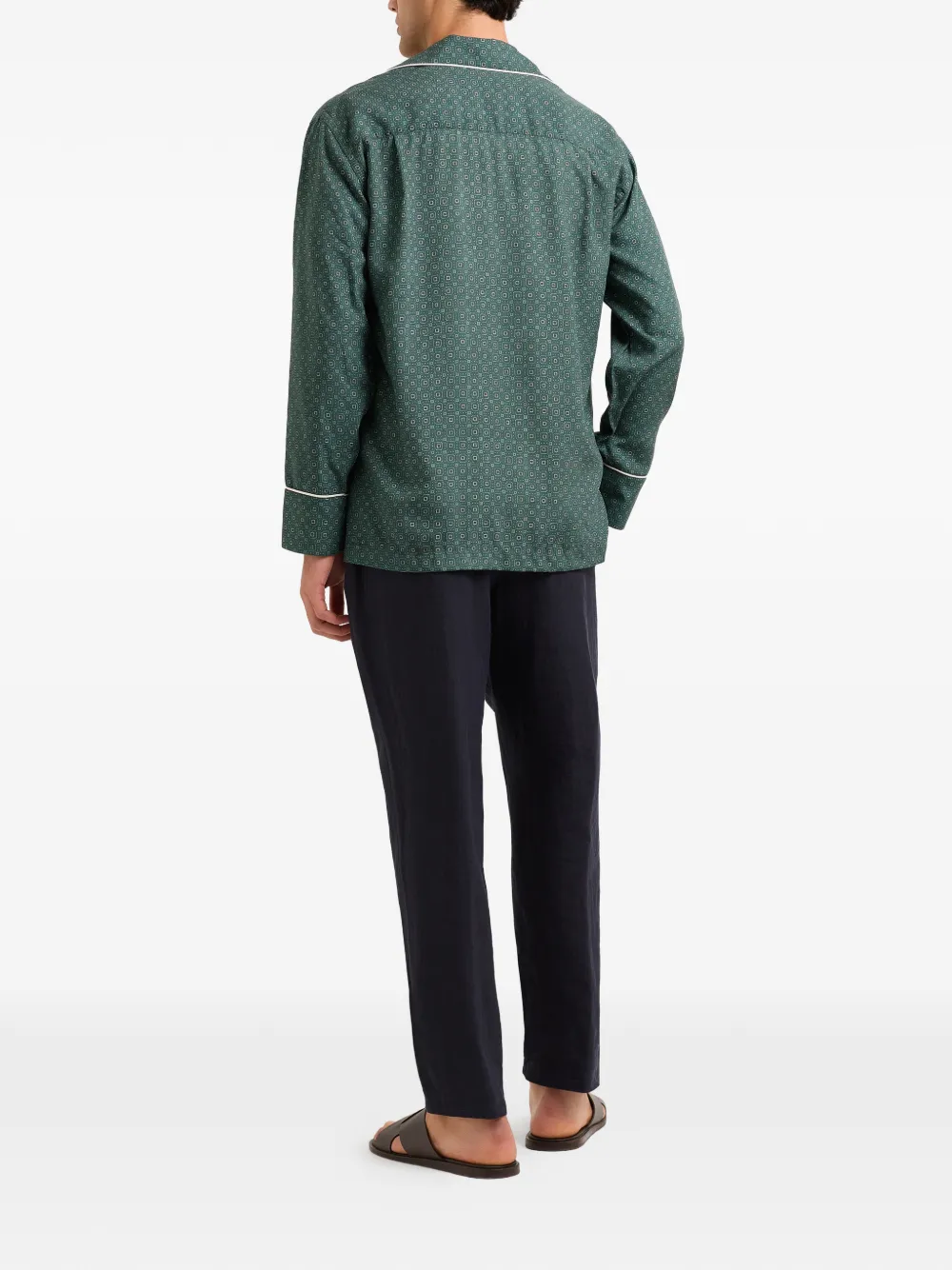 Зеленая рубашка с геометрическим принтом, застежкой на пуговицы, воротником-капелькой и длинными рукавами
