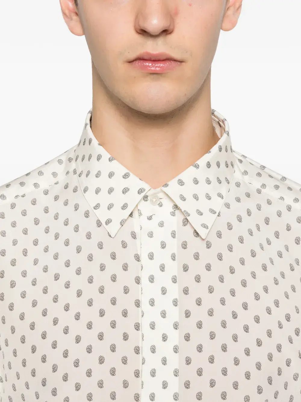Белая рубашка с принтом "пейсли", длинными рукавами, застежкой на пуговицы и острым воротником