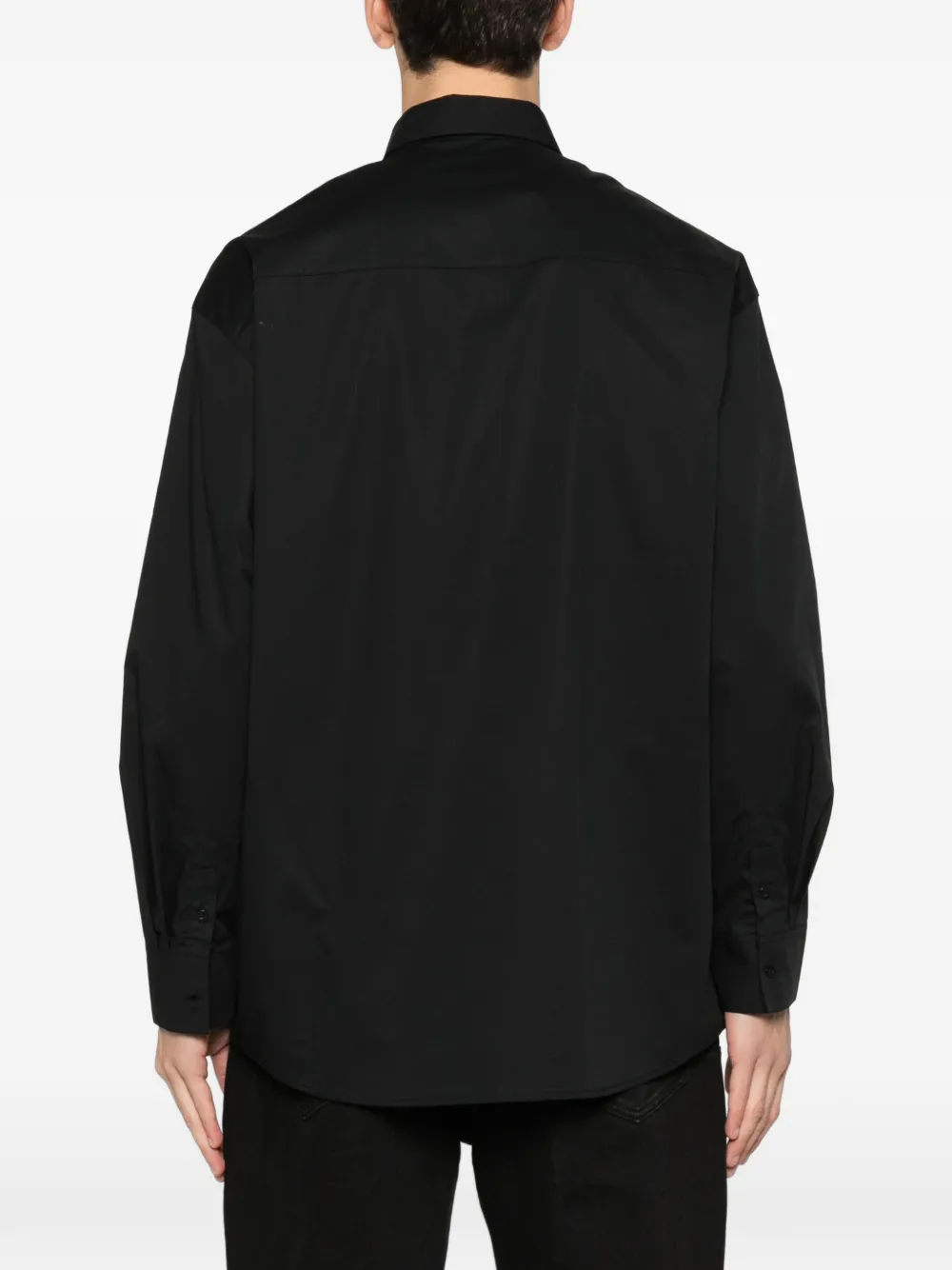 Черный цвет, застежка на пуговицы, длинные рукава, манжеты на пуговицах, нагрудный карман