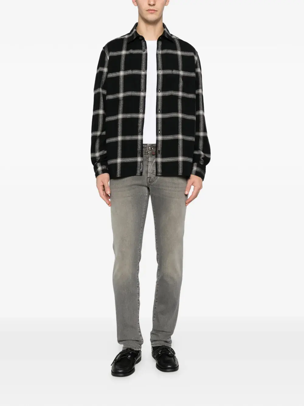 Черная рубашка в клетку с длинными рукавами, застежкой на пуговицы и нагрудными карманами