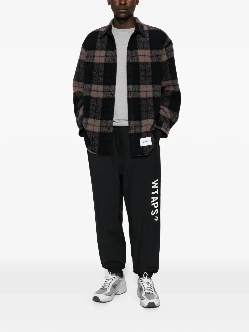 Синий/бежевый клетчатый узор, застёжка на пуговицы, длинные рукава, нашивка с логотипом