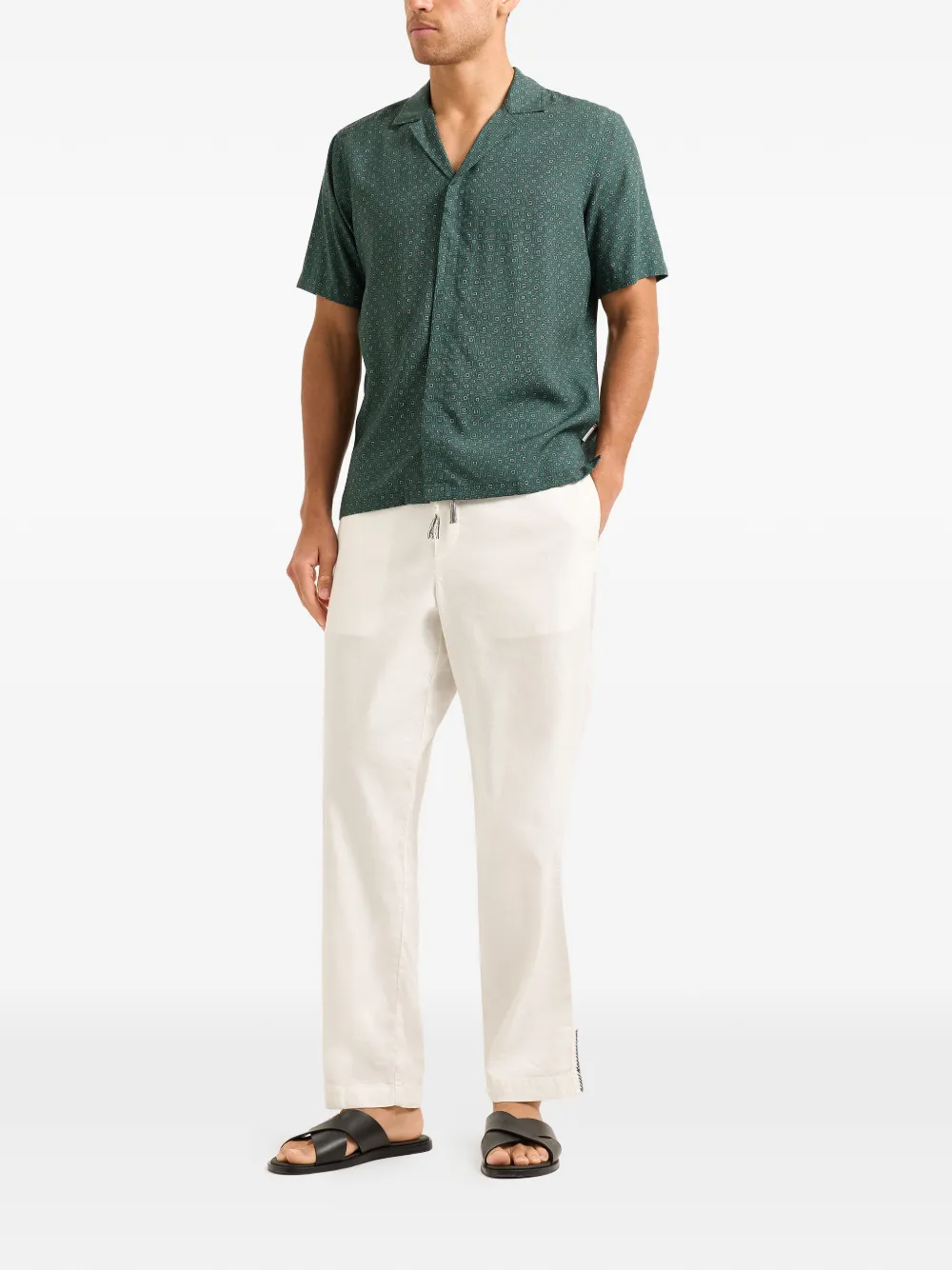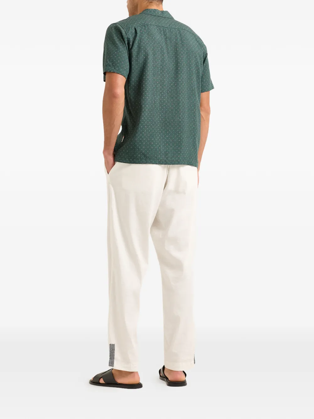 Зеленая рубашка с геометрическим принтом, короткими рукавами, воротником капри и застежкой на пуговицы