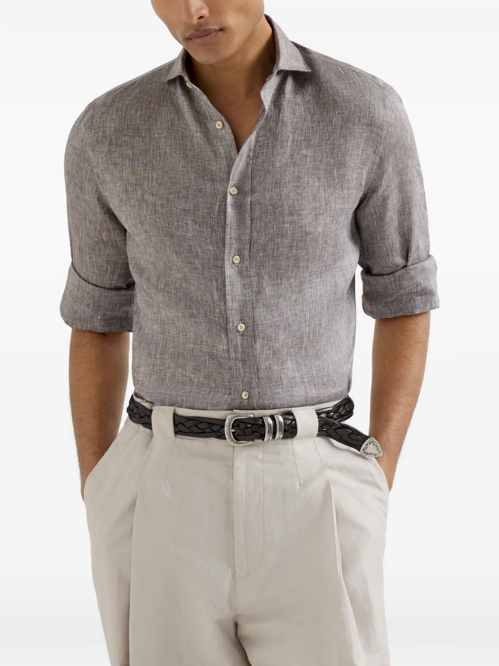 Льняная рубашка Brunello Cucinelli, коричневый 76 575₽