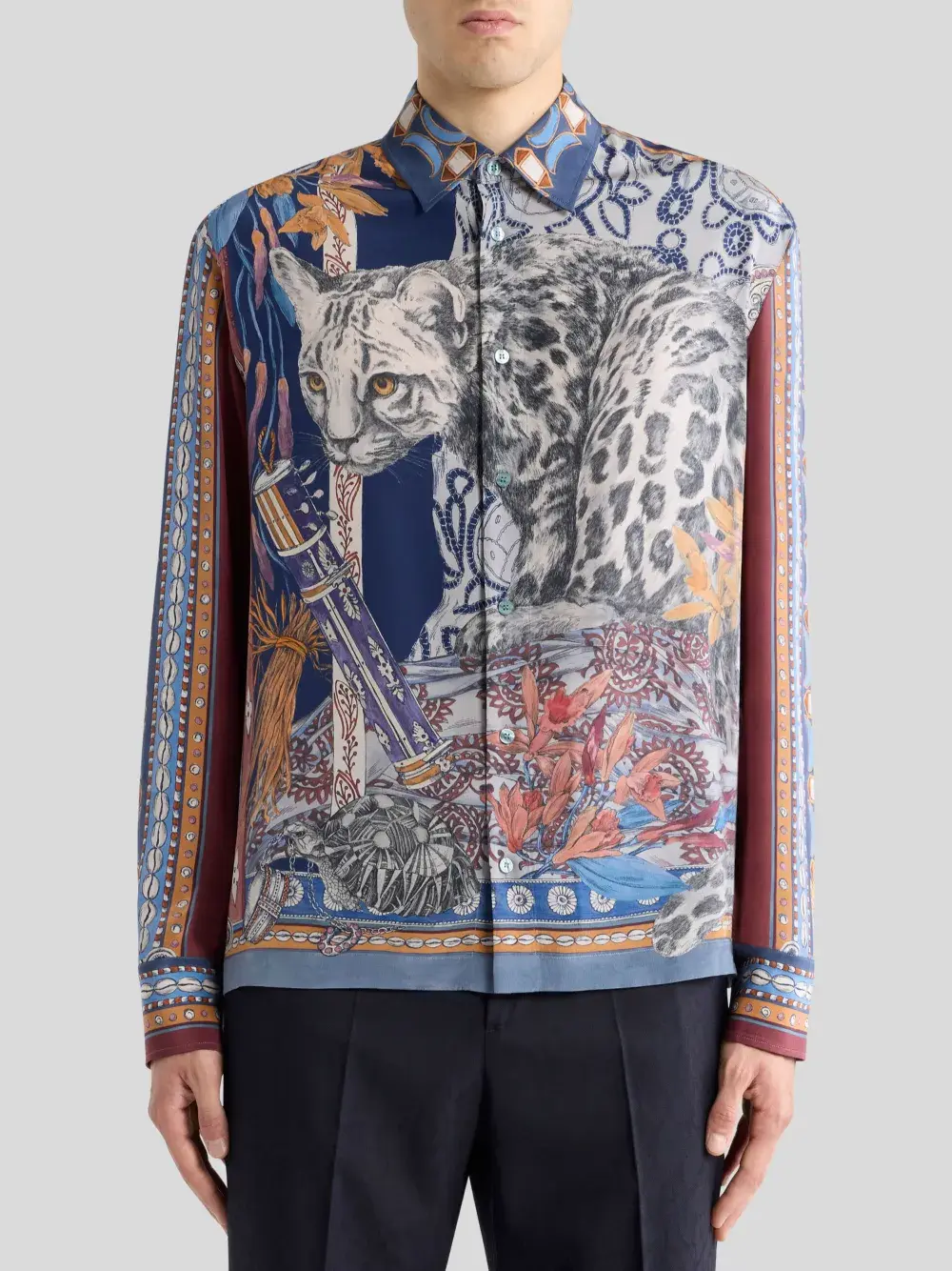 Шелковая рубашка с леопардовым принтом Etro, синий