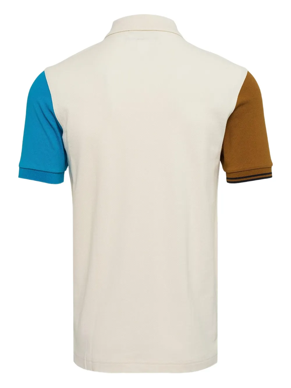 Короткие рукава цвета кремовый, дизайн в стиле колор-блок, двухцветные вставки на рукавах, воротник-поло, застежка на пуговицы