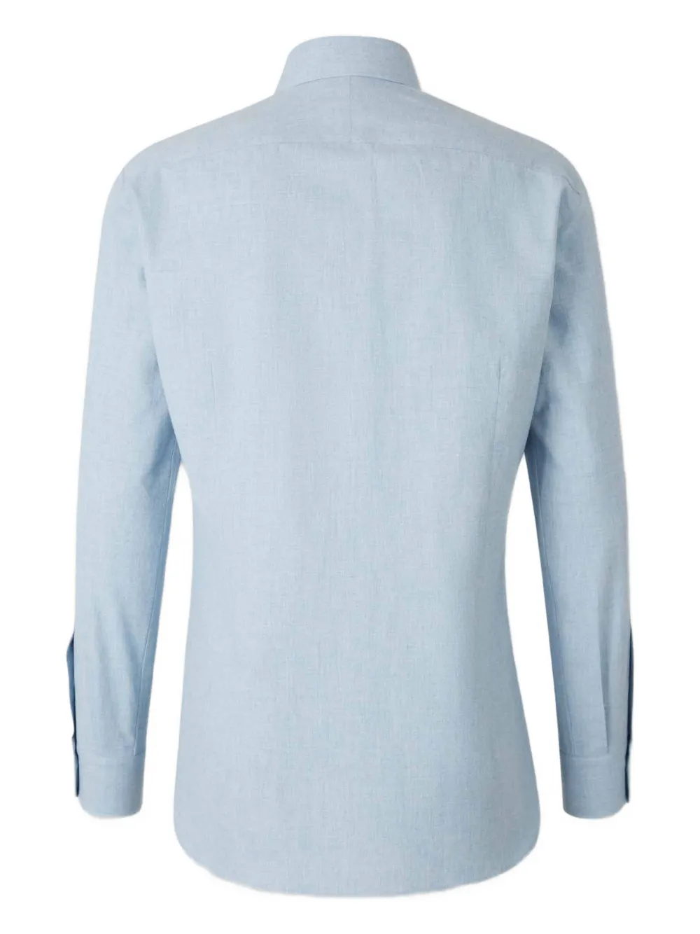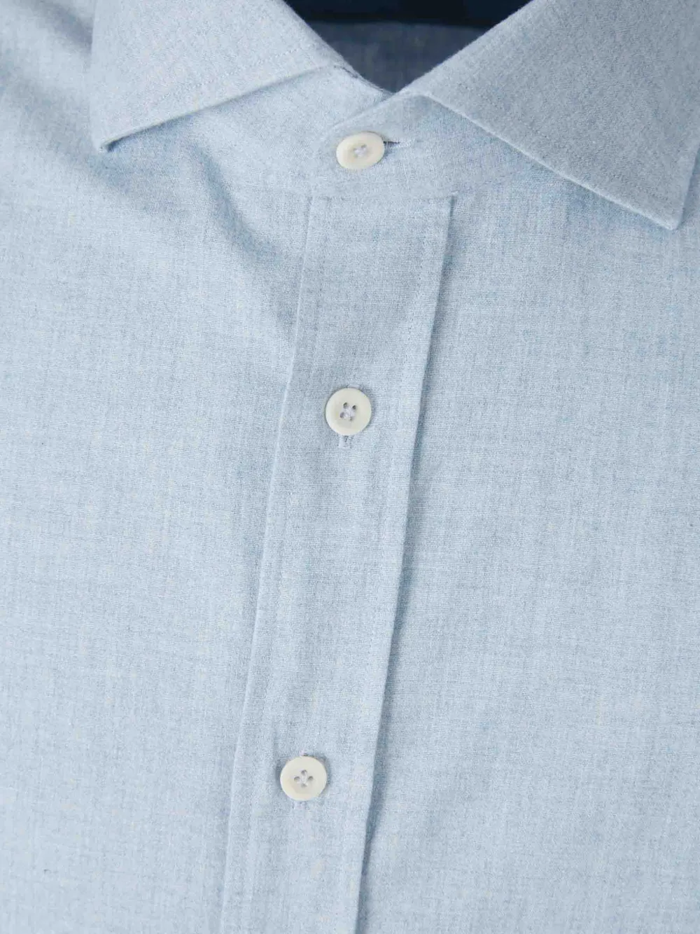 Светло-голубой цвет, манжеты в рубчик, застежка на пуговицы, классический воротник, регулируемые манжеты, деталь с пуговицей