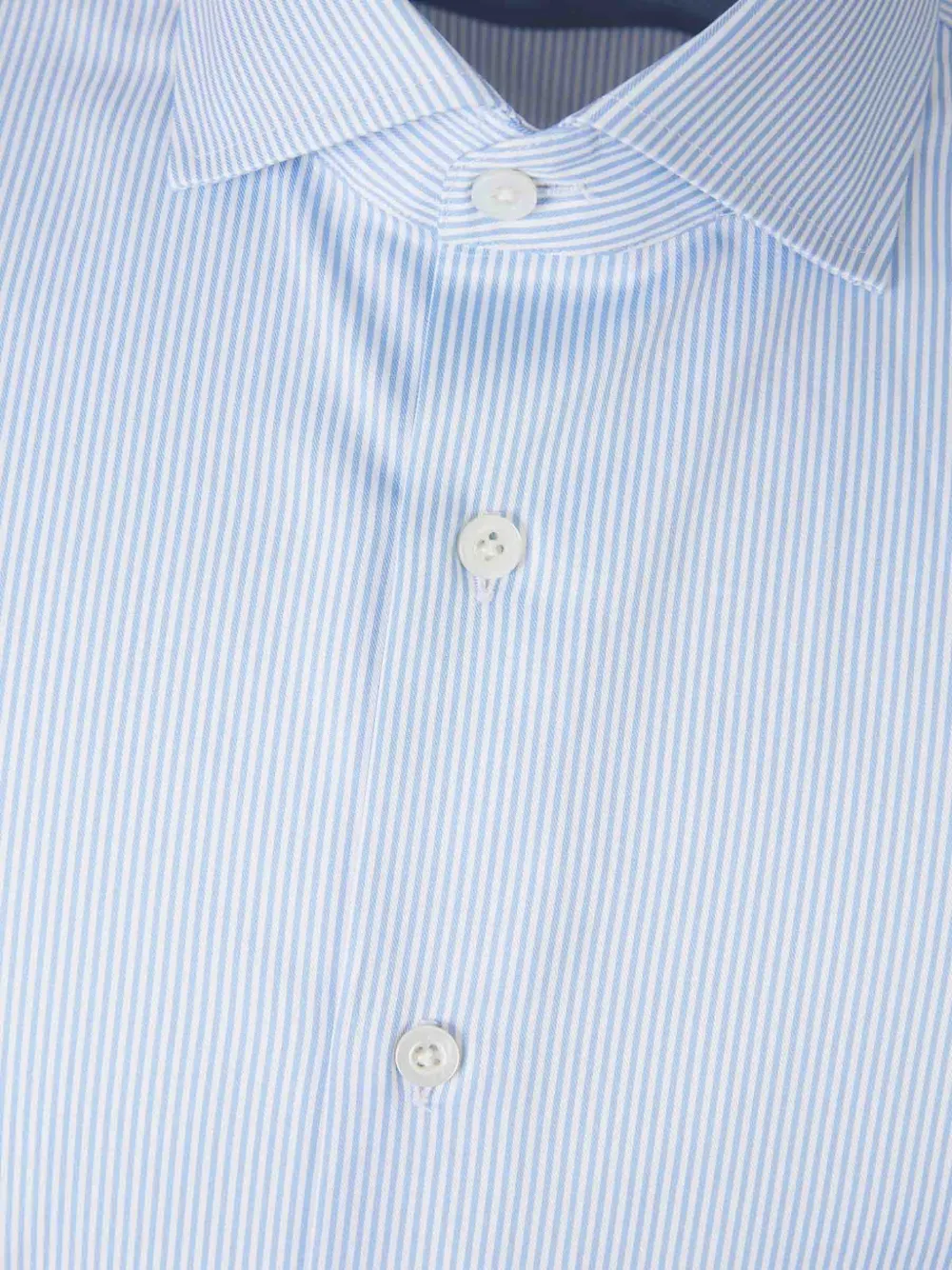 Синий в полоску, классический воротник, застежка на пуговицы, манжеты на пуговицах, аккуратная строчка