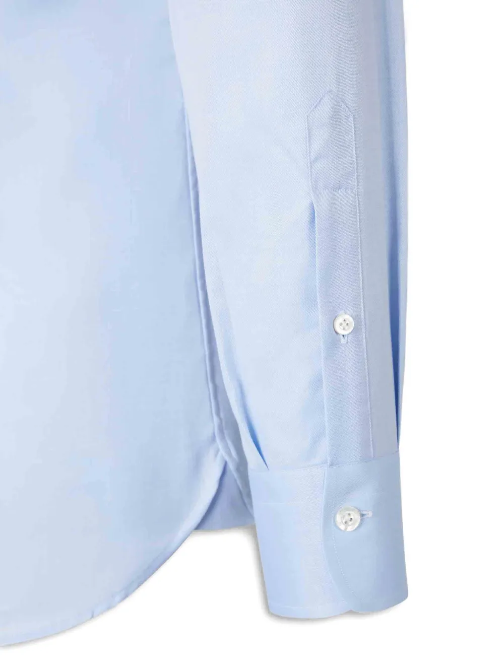 Небесно-голубой цвет, застёжка на пуговицах, классический воротник, ребристые манжеты, ребристый низ, манжеты на пуговицах