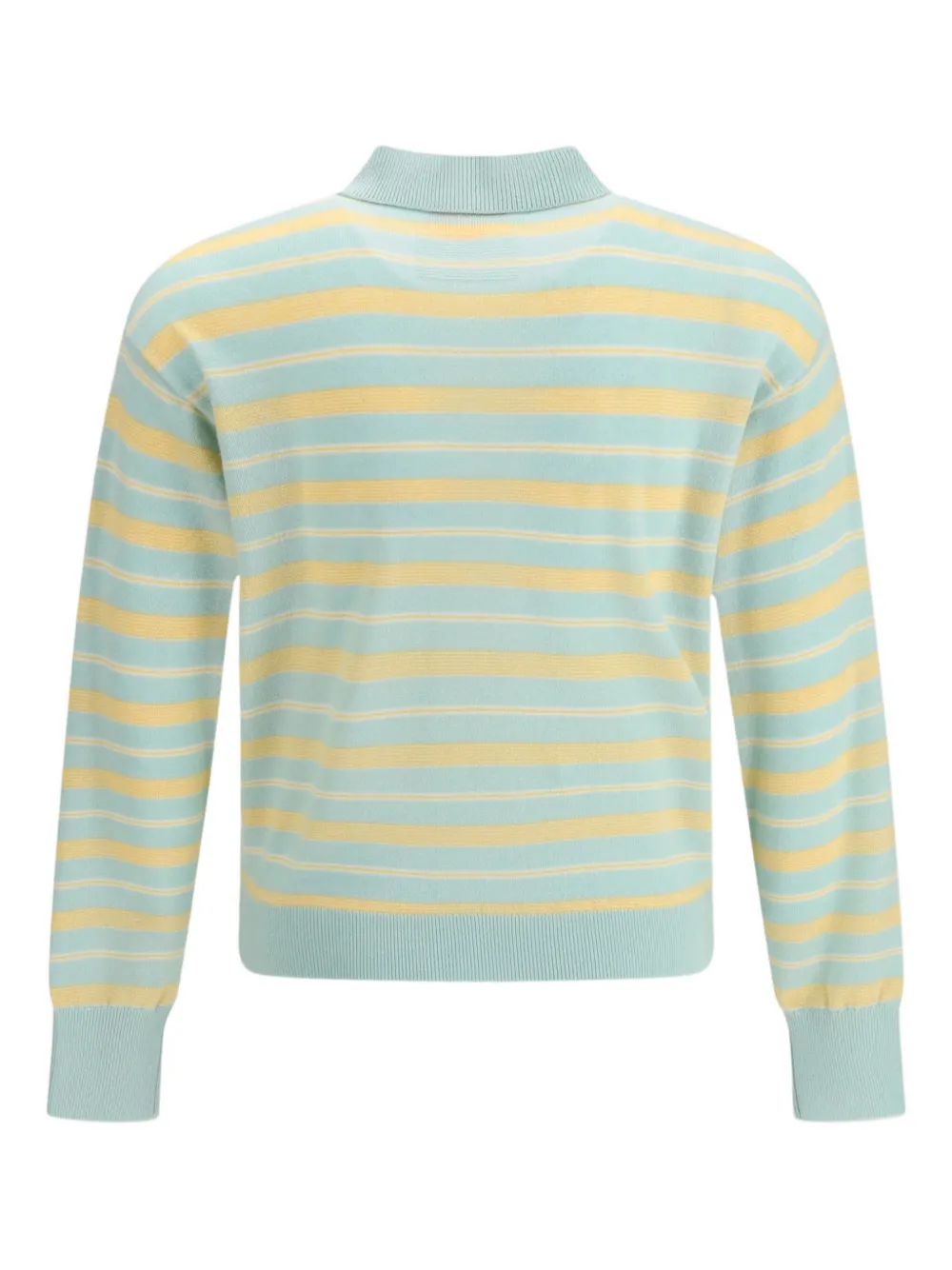 Светло-голубой в полоску, рубашка-поло с ребристой фактурой, воротник-поло, застёжка на три пуговицы, ребристые манжеты, ребристый низ