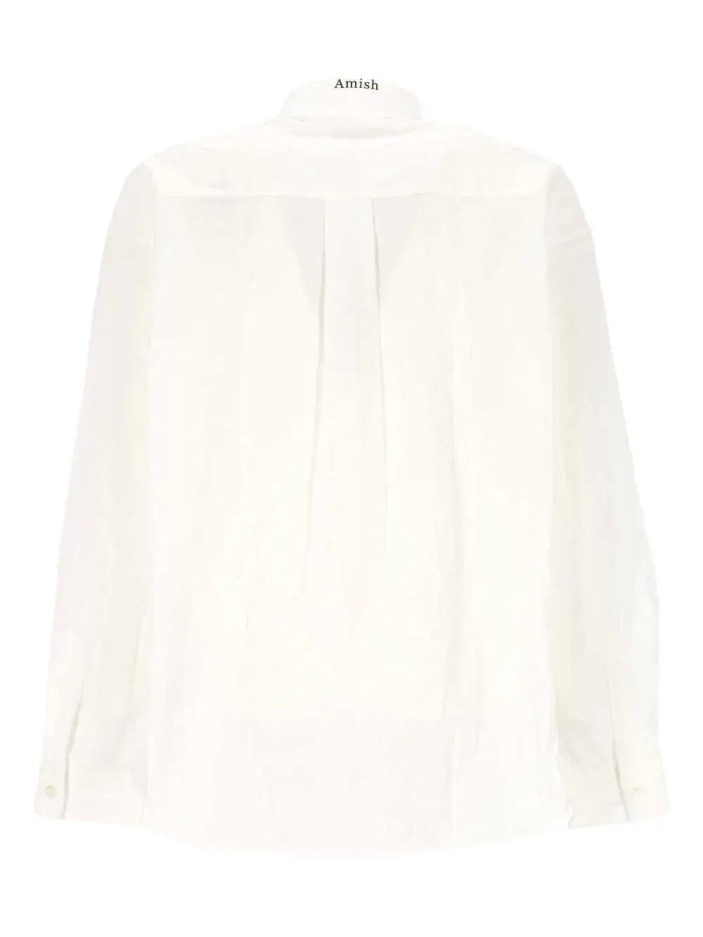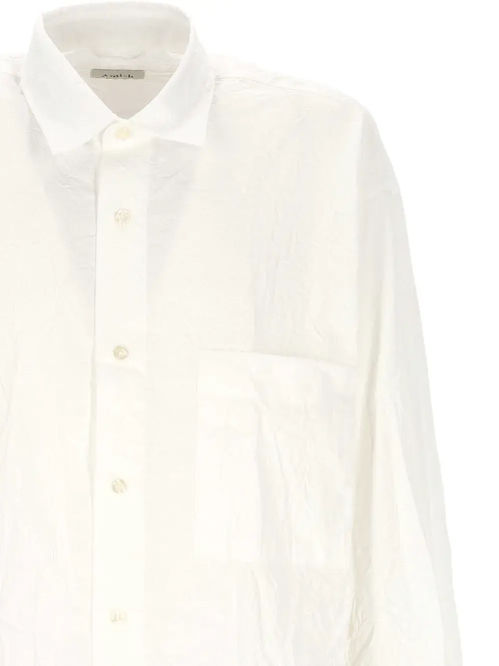 Белый с нагрудным карманом и застёжкой на пуговицы