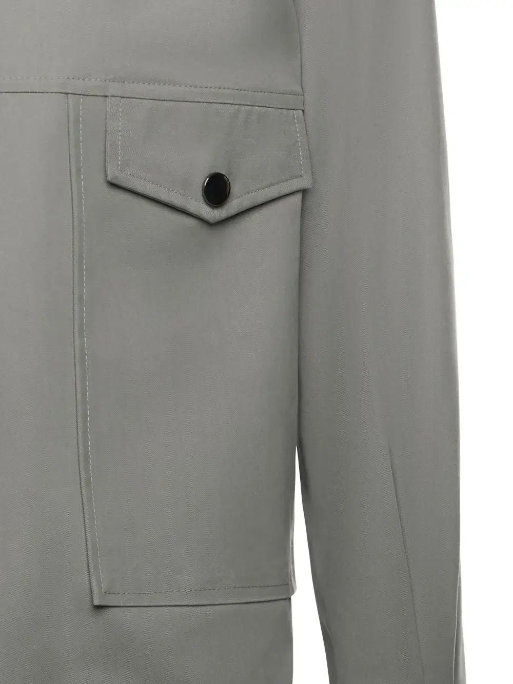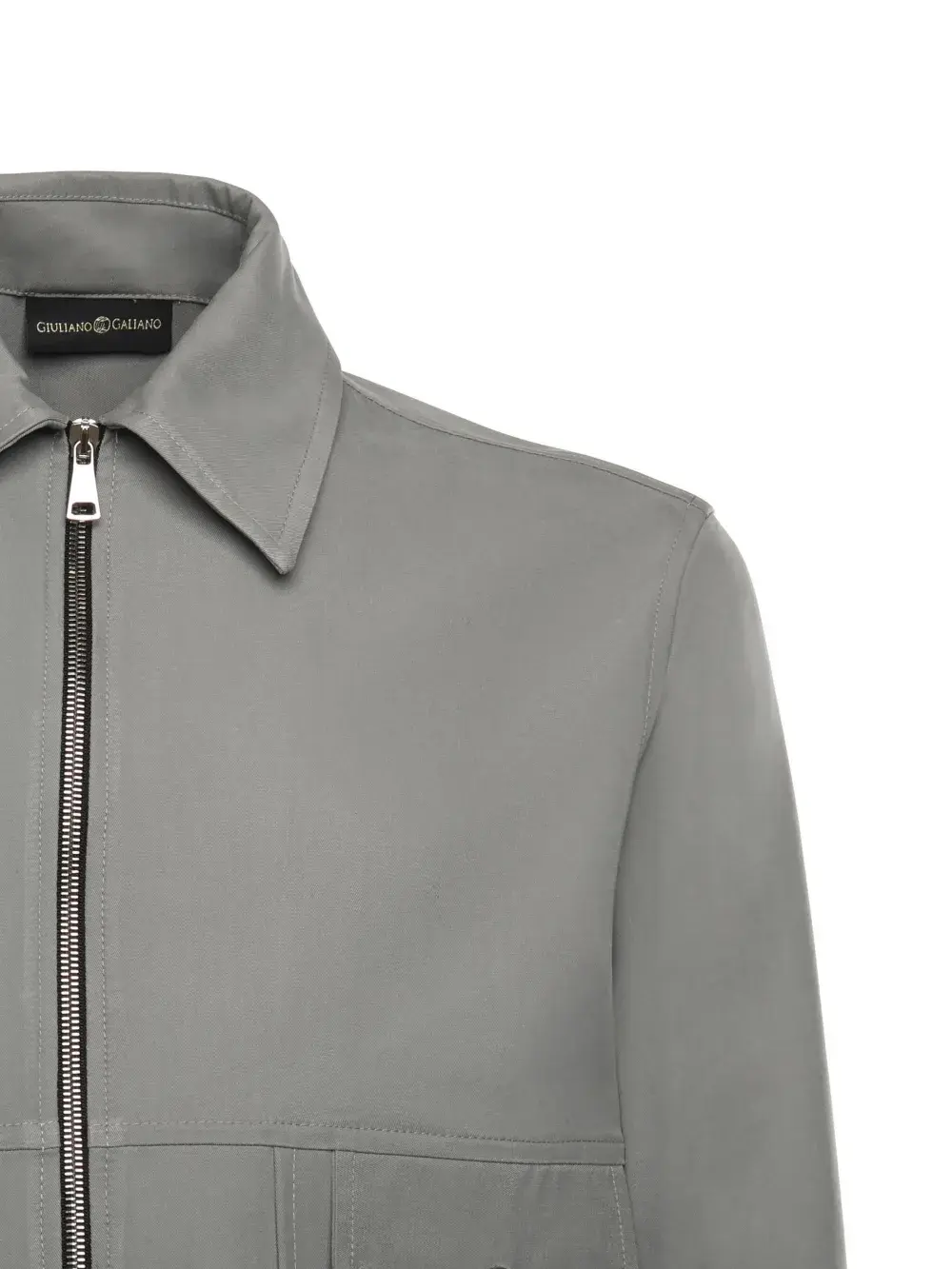 Серый цвет, нагрудный карман, застежка-молния спереди, длинные рукава, классический воротник