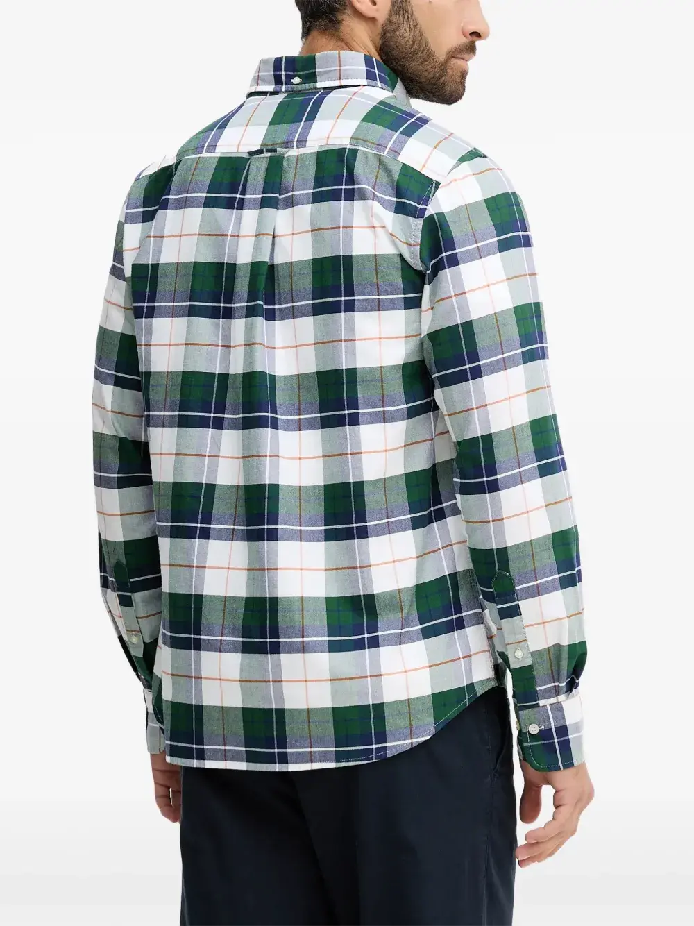 Зеленый в клетку, накладной карман на груди, застежка на пуговицы, воротник на пуговицах, длинные рукава