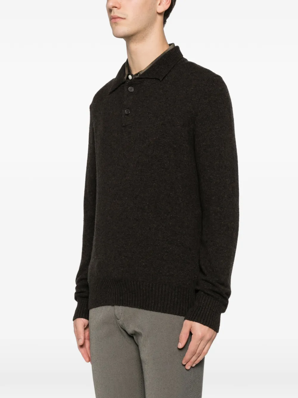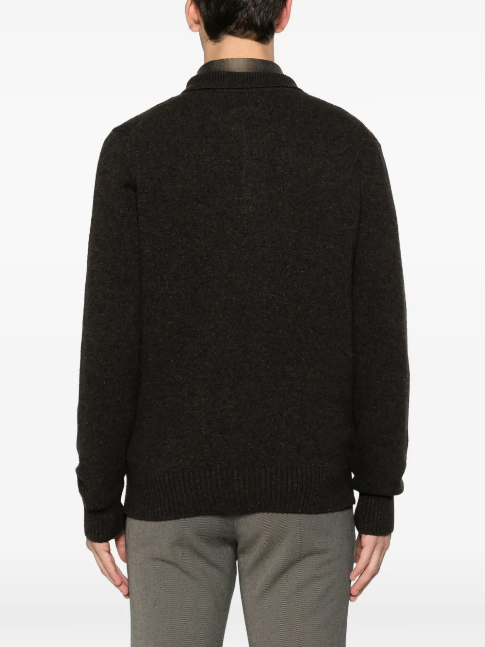 Коричневый, длинные рукава, ребристый низ, застёжка на пуговицы