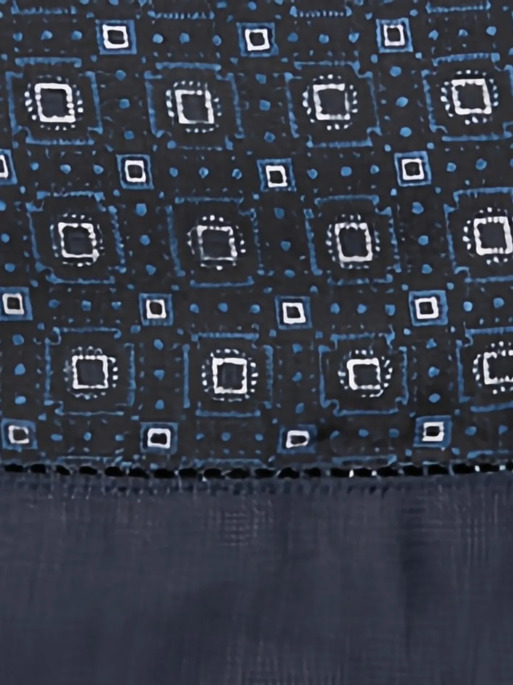 Синяя рубашка с геометрическим принтом, короткими рукавами, застёжкой на пуговицы и прямым краем