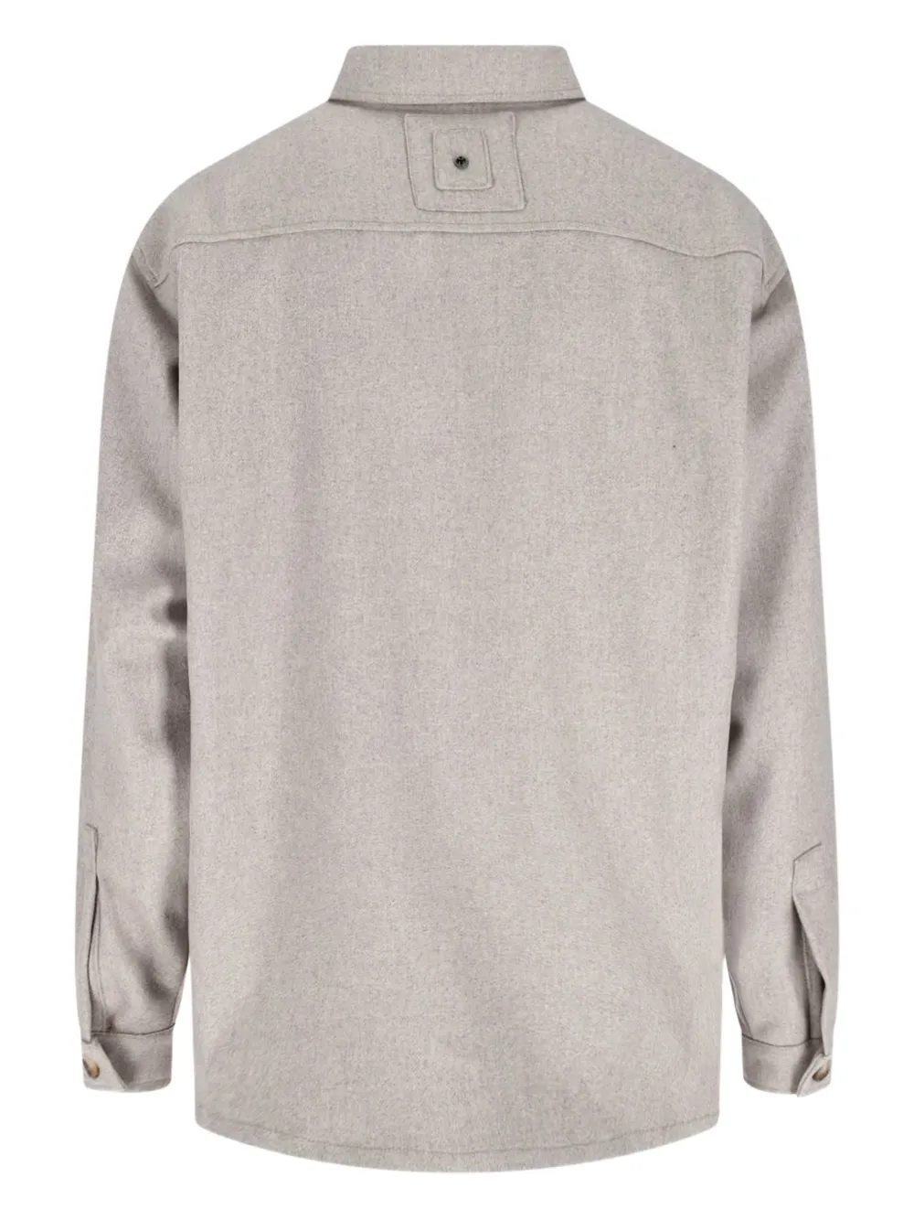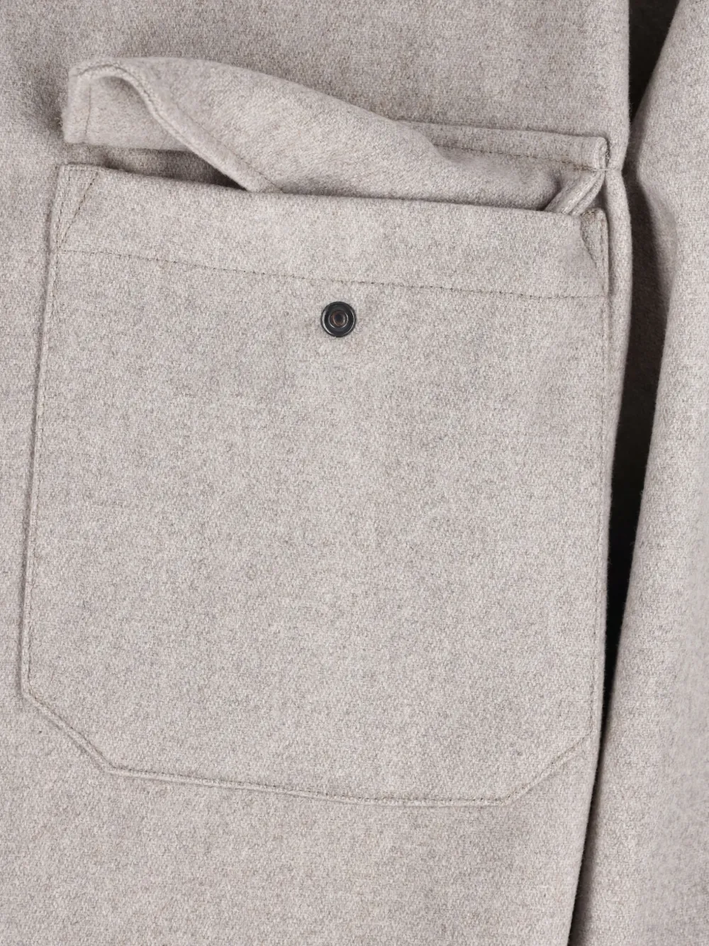 Бежевый шерстяной бленд, нагрудные карманы, застежка на пуговицы, длинные рукава, манжеты на пуговицах
