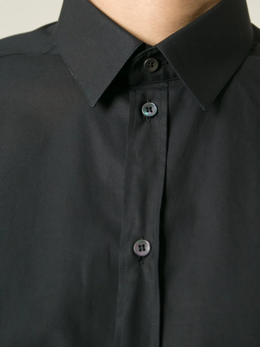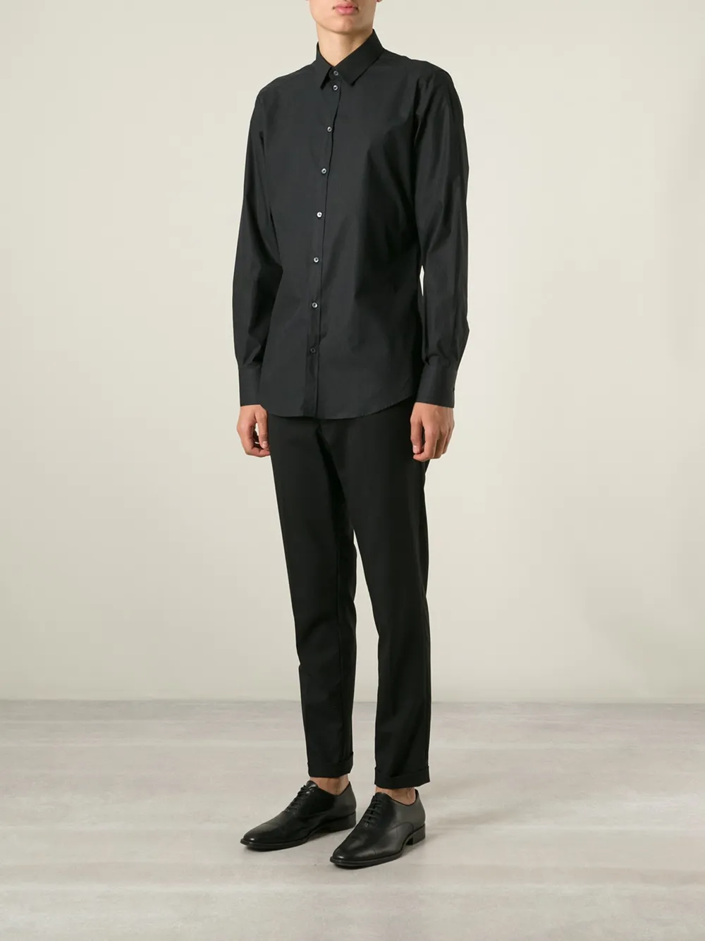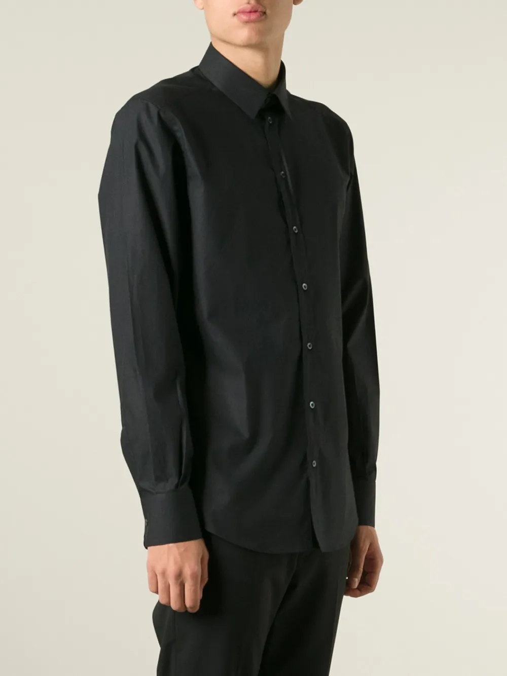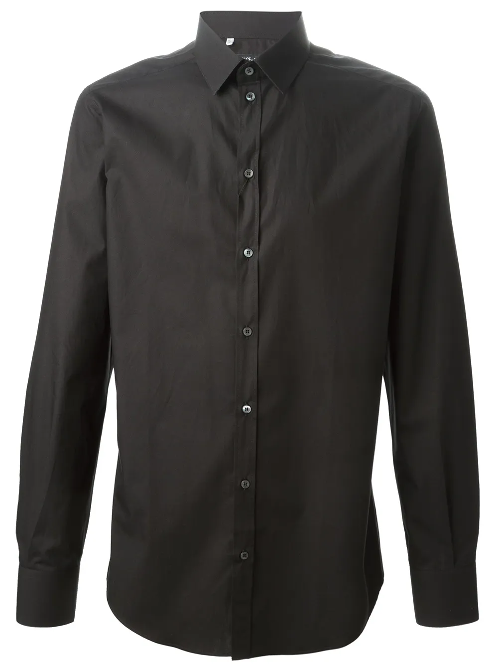 Чёрная хлопковая классическая рубашка от Dolce & Gabbana. Классический воротник, длинные рукава, манжеты на пуговицах, застёжка на пуговицах спереди, закруглённый подол.