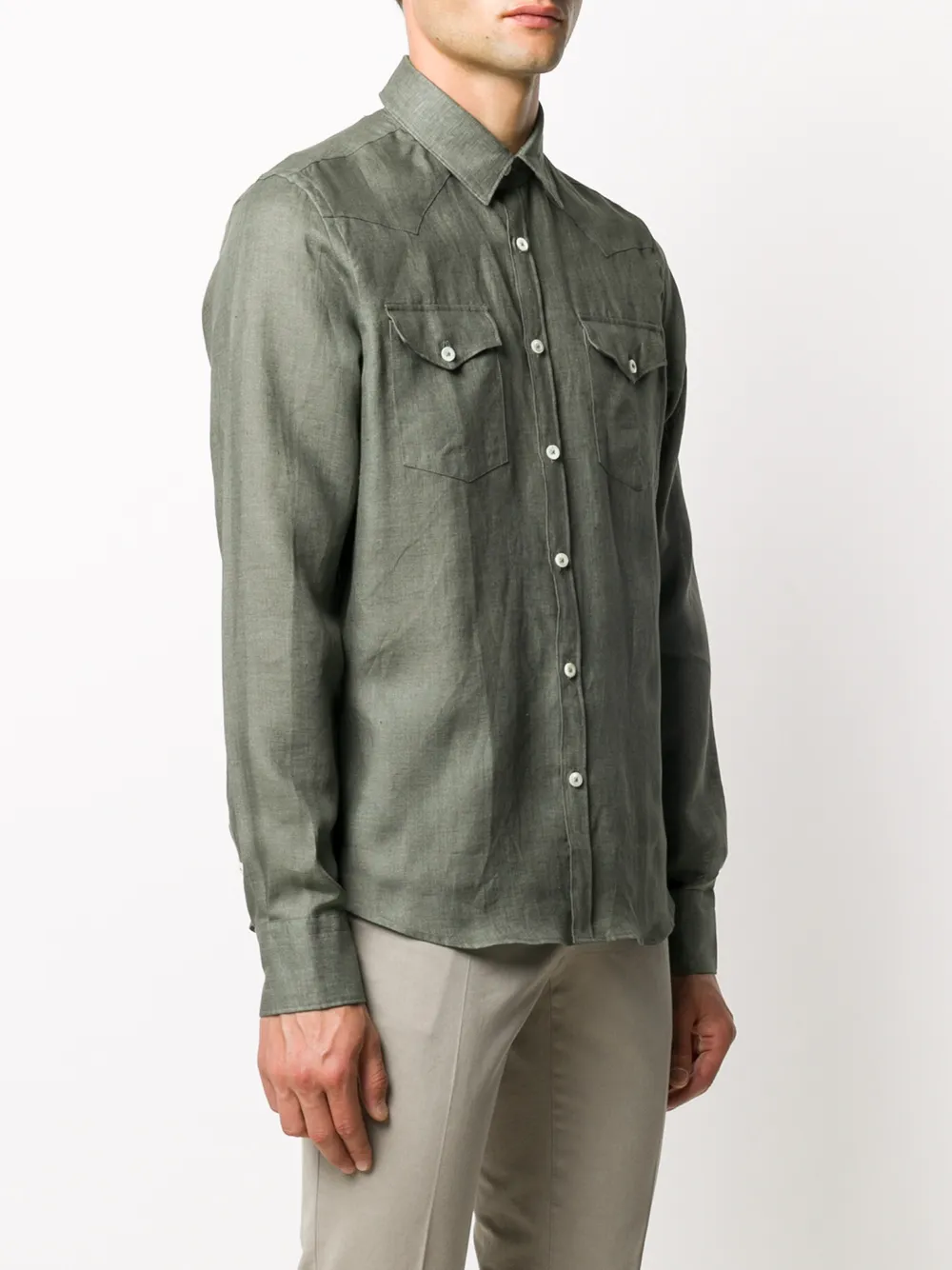 Однотонная рубашка на пуговицах Dell'Oglio, зеленый