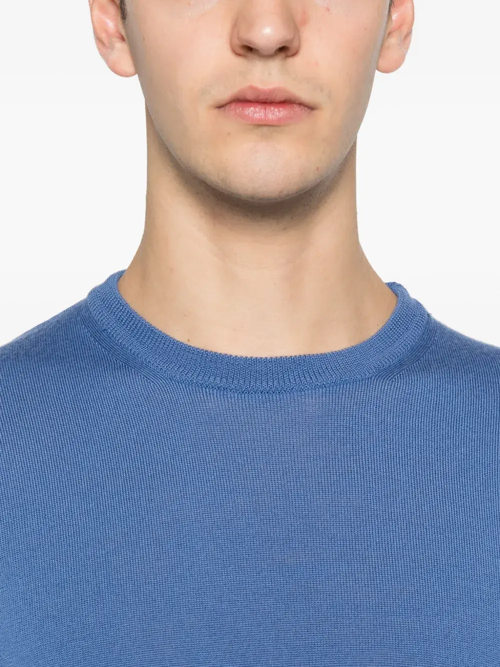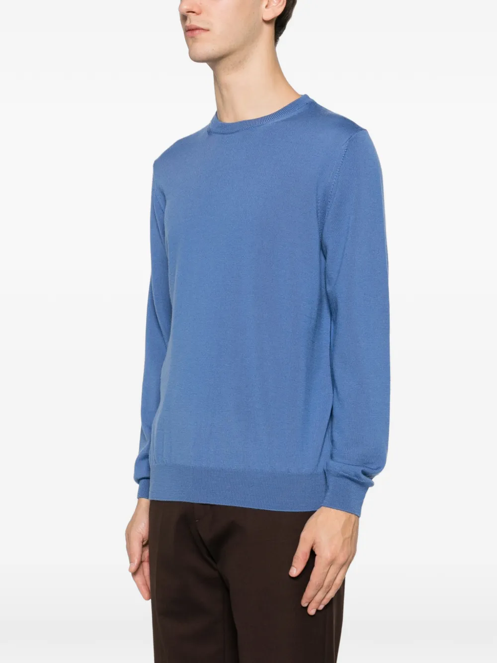 Синий джемпер с круглым вырезом, длинными рукавами, трикотажными манжетами и нижним краем