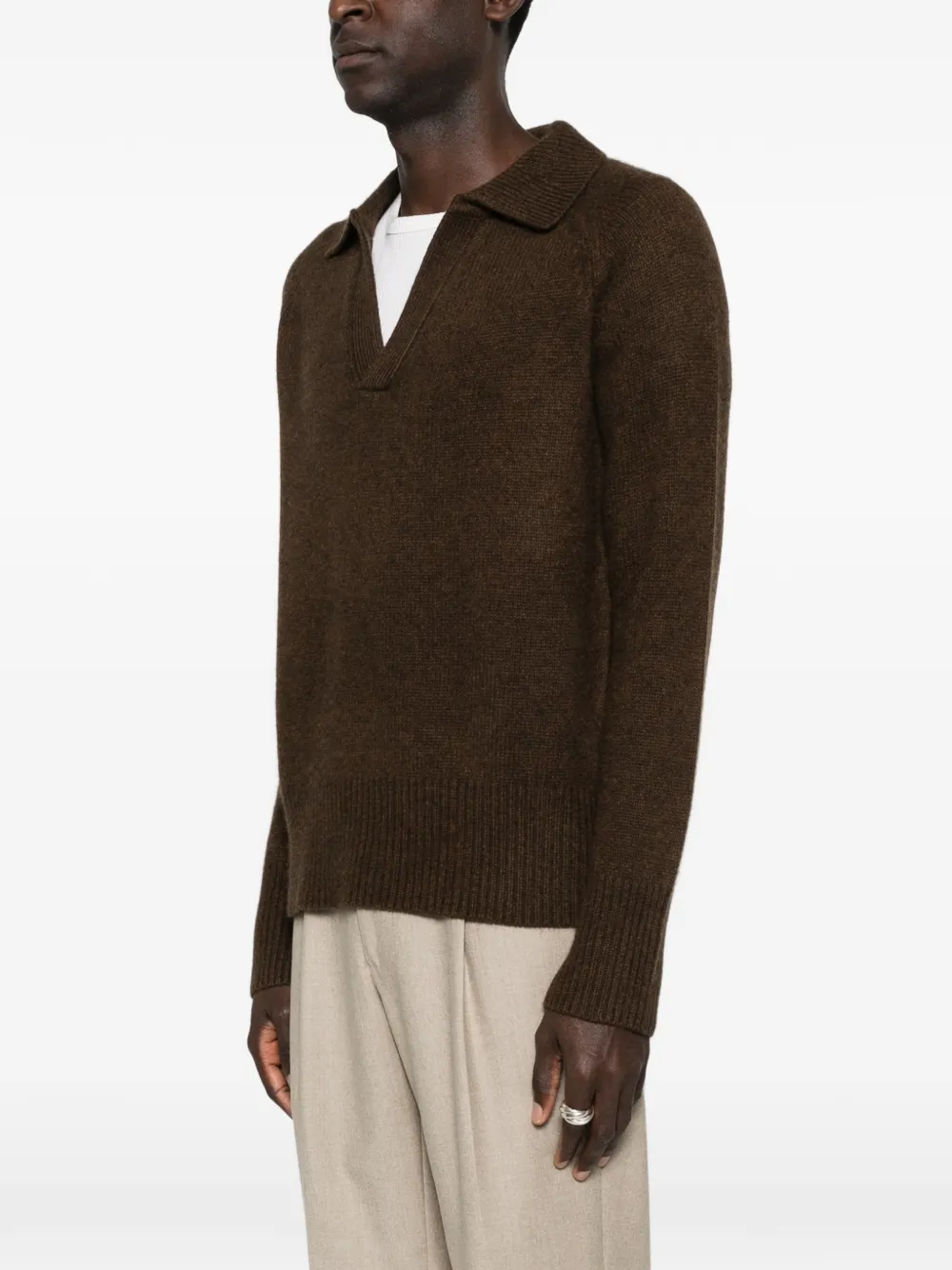 Кашемировый свитер крупной вязки с V-образным вырезом, дымчато-коричневый