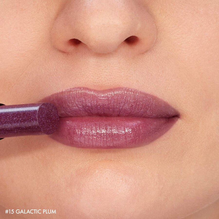 15 Galactic Plum INGREDIENTS : Bis-Diglyceryl Polyacyladipate-2, Octyldodecanol, Methyl Hydrogenated Rosinate, Hydrogenated Polydecene, Ricinus Communis (Castor) Seed Oil, Hydrogenated Styrene/Methyl Styrene/Indene Copolymer, Polybutene, C12-15 Alkyl Benzoate, Cera Microcristallina (Microcrystalline Wax), Synthetic Wax, Calcium Aluminum Borosilicate, Zea Mays (Corn) Starch, Ethylene/Propylene Copolymer, Butyrospermum Parkii Butter (Butyrospermum Parkii (Shea Butter)), Limnanthes Alba (Meadowfoam) Seed Oil, Stearalkonium Hectorite, Alumina, CI 77491 (Iron Oxides), Parfum (Fragrance), CI 45410 (Red 28 Lake), CI 77891 (Titanium Dioxide), CI 42090 (Blue 1 Lake), Propylene Carbonate, CI 15850 (Red 7), Mangifera Indica (Mango) Seed Butter, Helianthus Annuus (Sunflower) Seed Oil, Ammonium Glycyrrhizate, Pentaerythrityl Tetra-Di-T-Butyl Hydroxyhydrocinnamate, Glyceryl Stearate Citrate, Tin Oxide, Tocopherol, Ascorbyl Tetraisopalmitate, Squalene, Beta-Sitosterol.