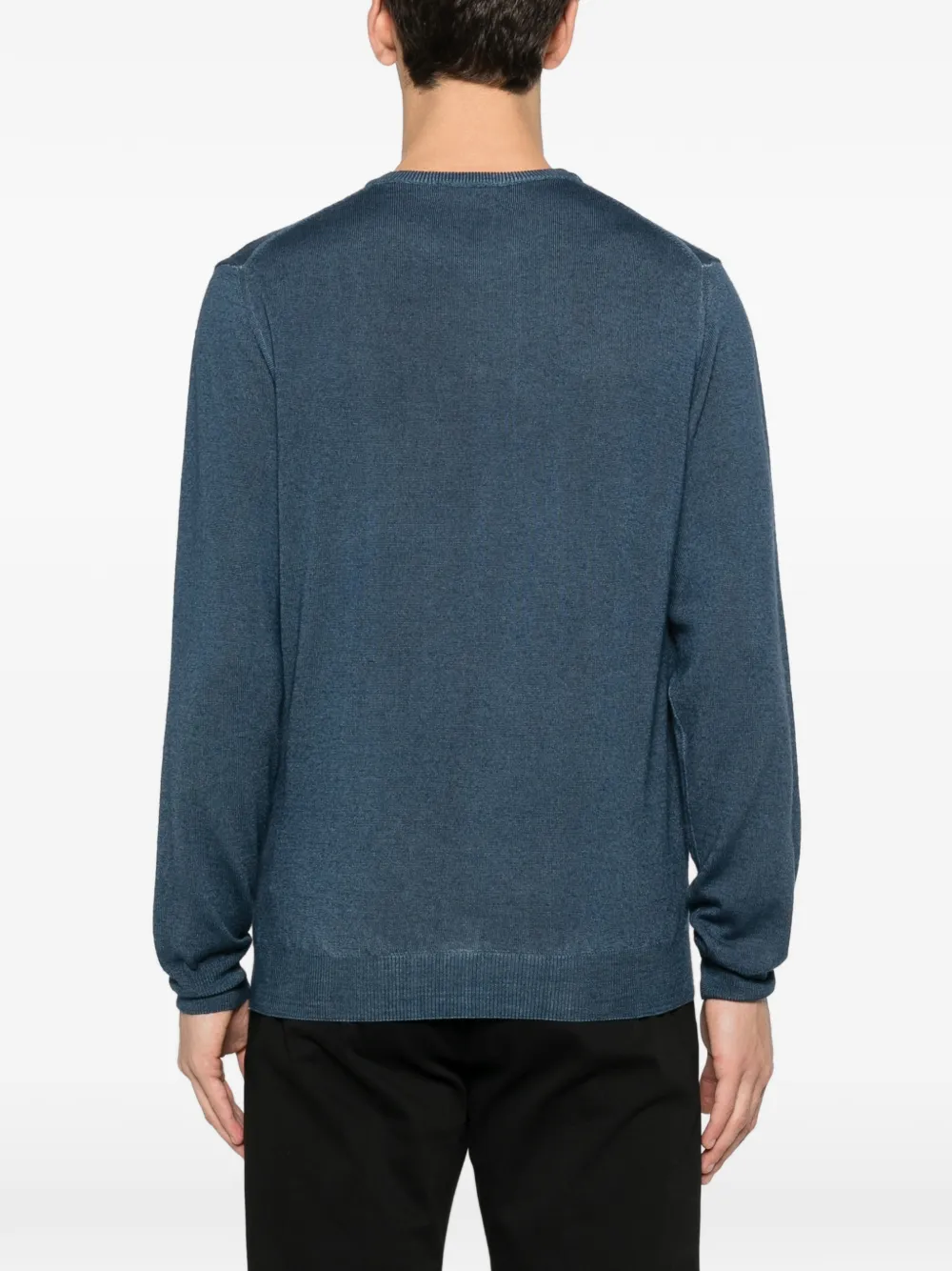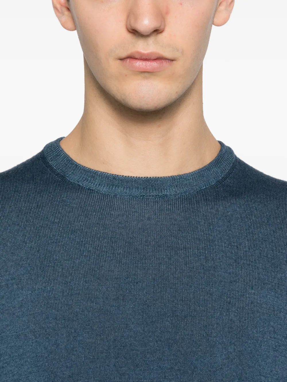 Синий джемпер с круглым вырезом, длинными рукавами, ребристыми манжетами и ребристым низом