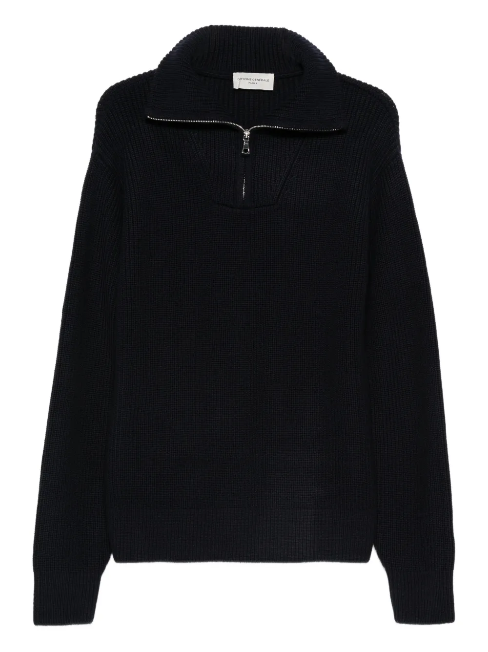 Свитер в рубчик с воротником на молнии Officine Generale, синий
