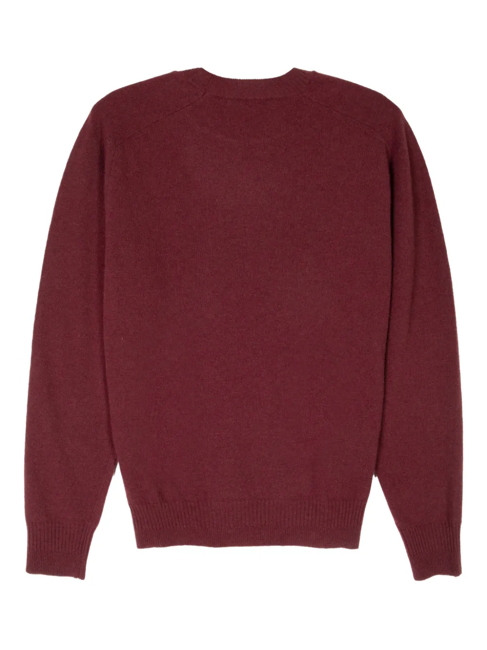 Бордовый свитер с круглым вырезом, длинными рукавами, ребристыми манжетами и подолом