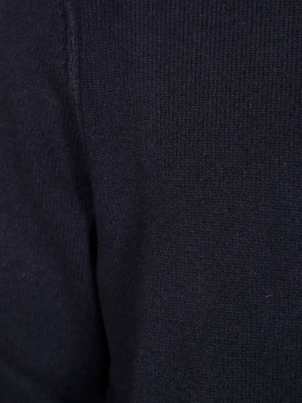 Темно-синий цвет, видимые швы, круглый вырез, длинные рукава, ребристый низ, ребристые манжеты