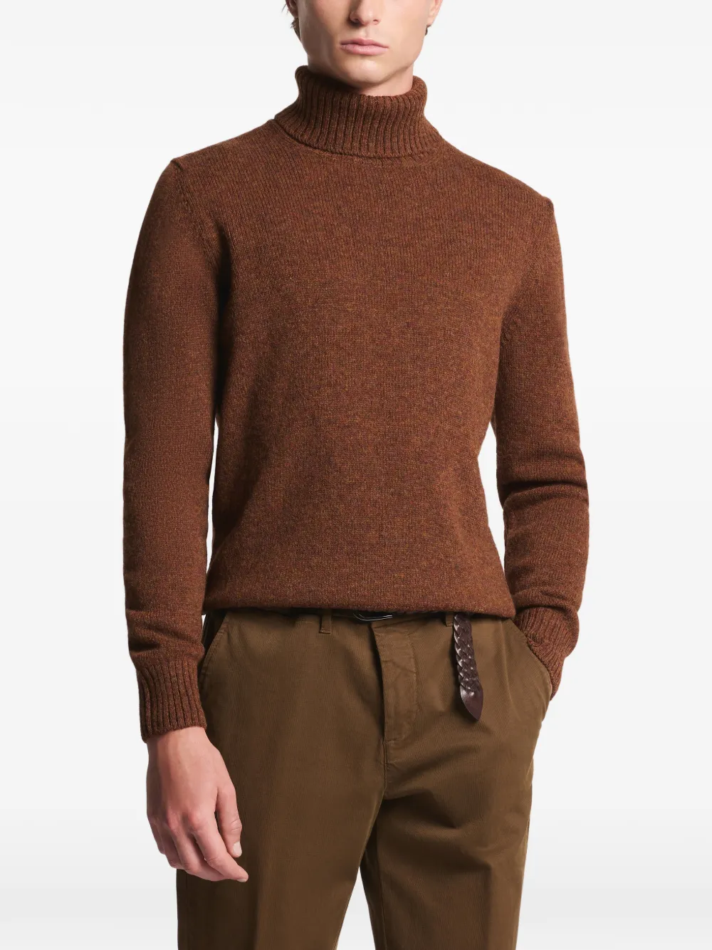 Коричневая водолазка с длинными рукавами и рубчатой отделкой