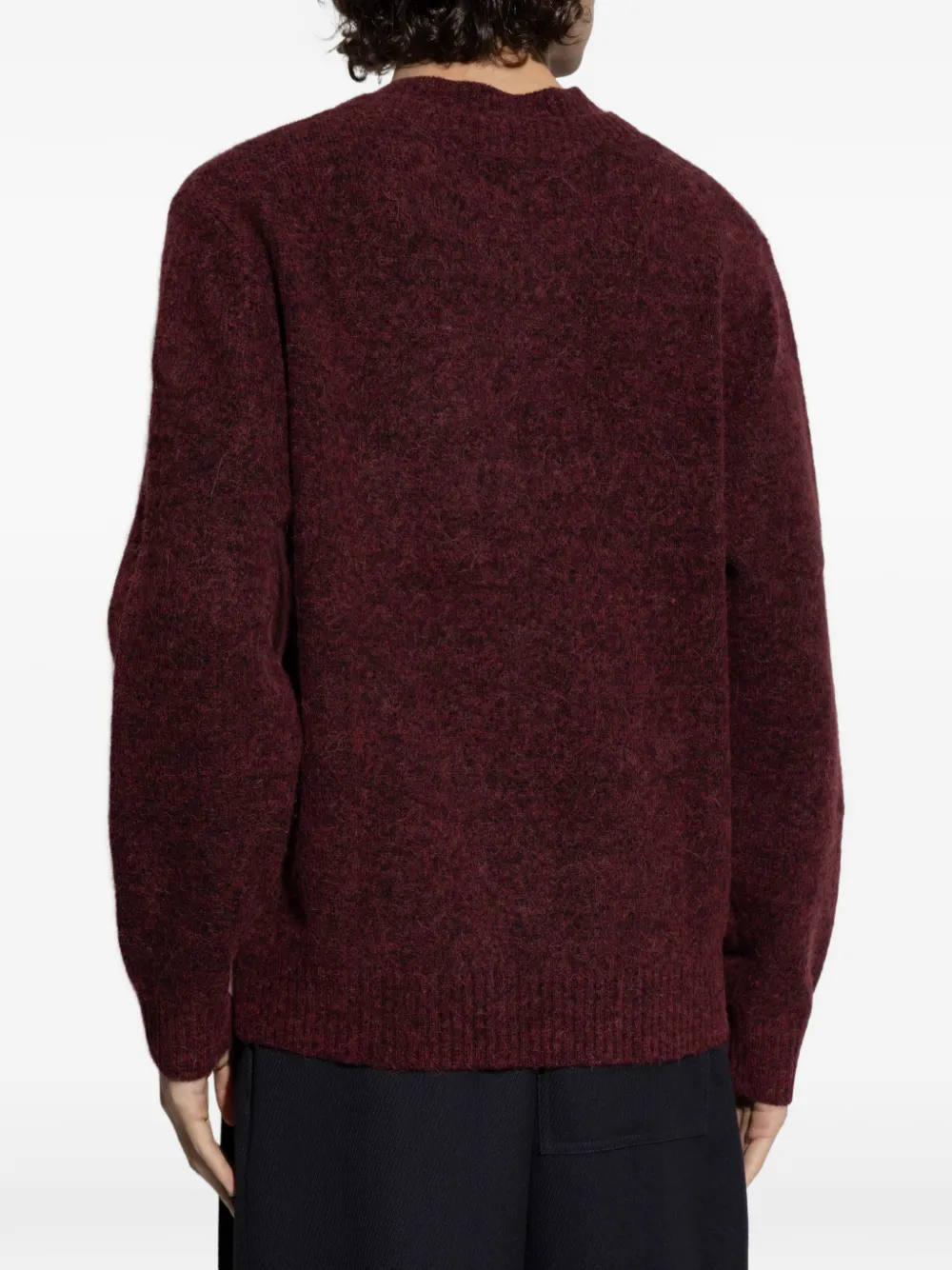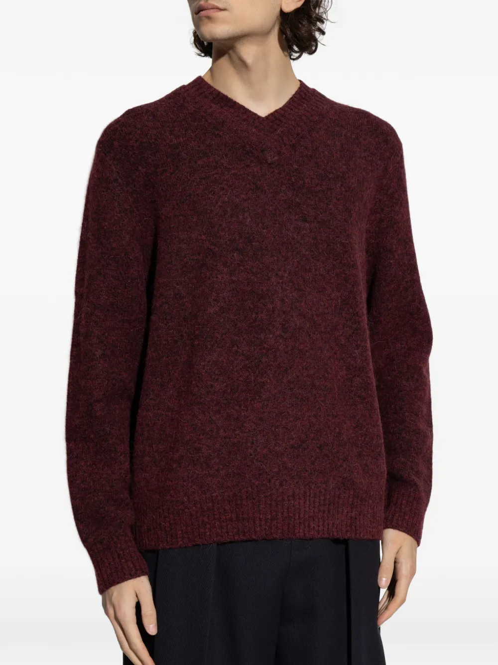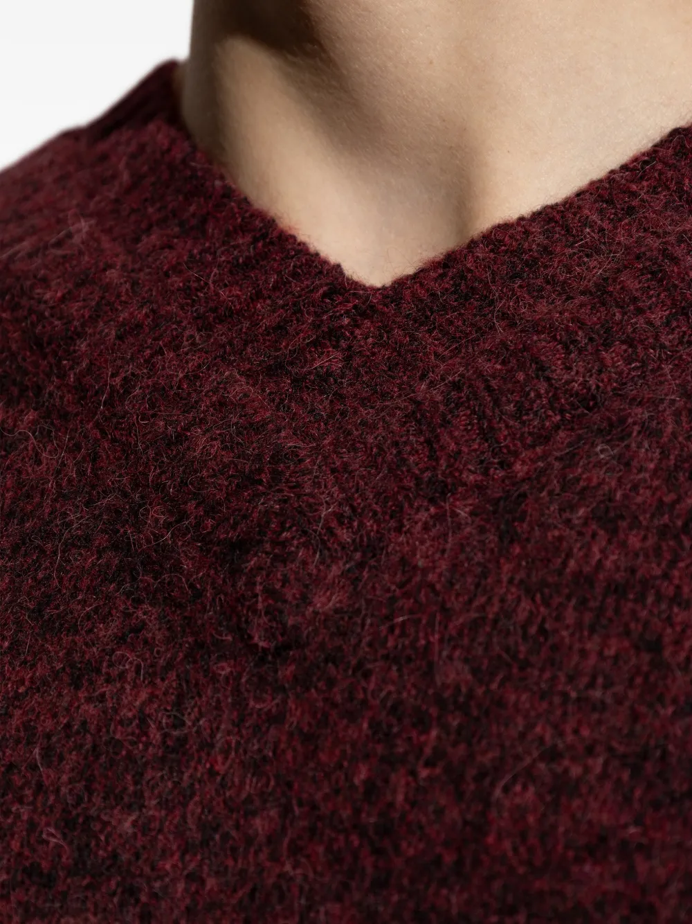 Вязанный свитер меланжевого оттенка "ром с изюмом" с V-образным вырезом и длинными рукавами