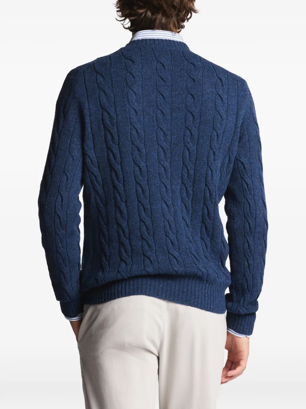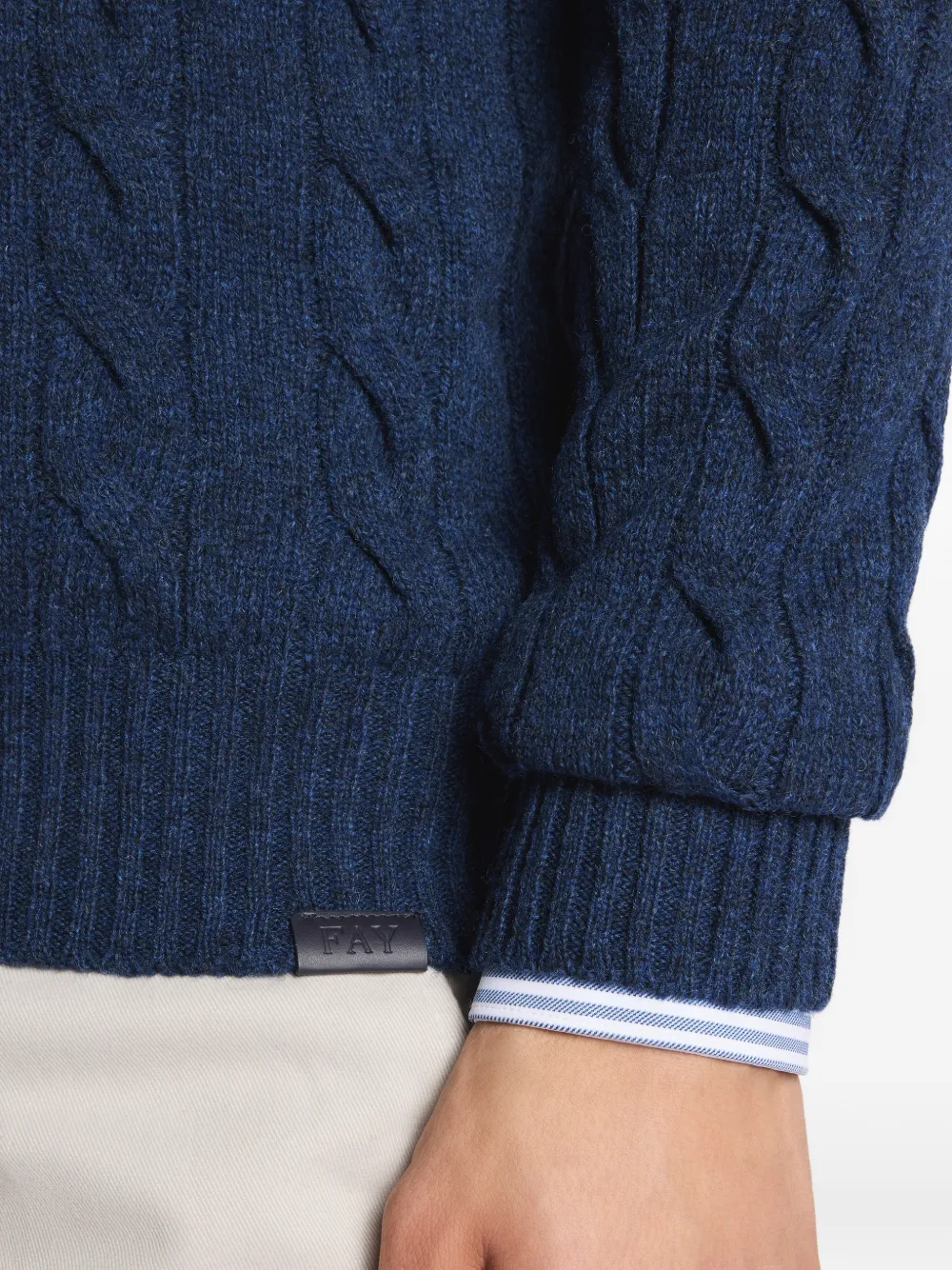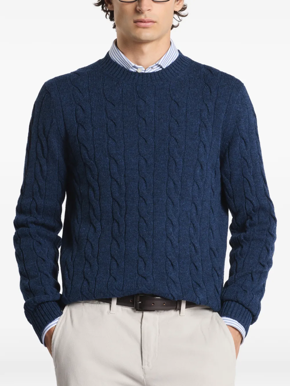 Свитер с плетёным узором и круглым вырезом Fay, синий