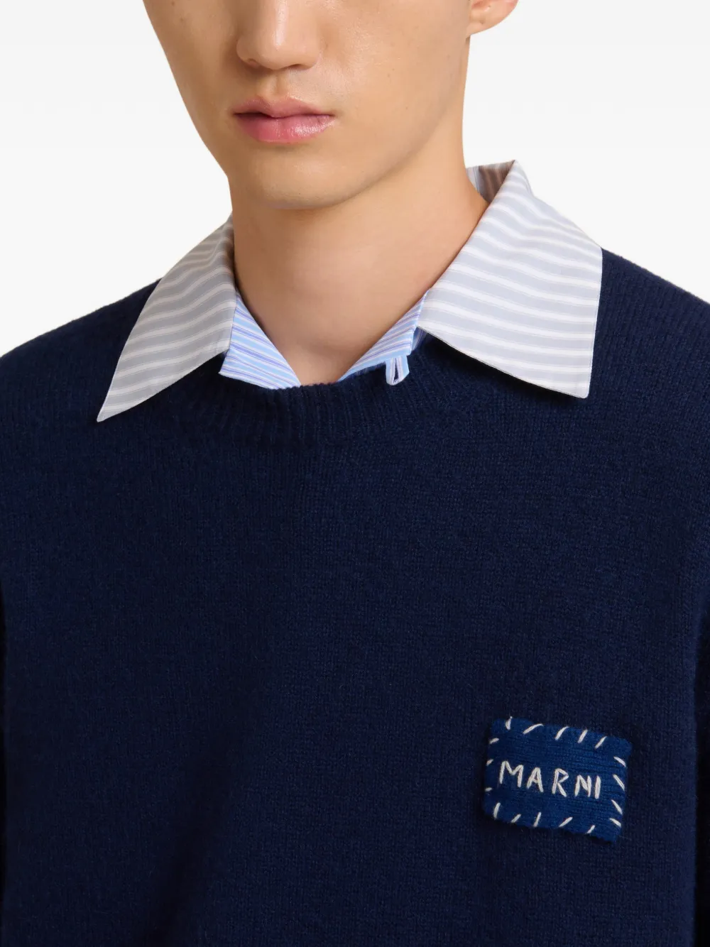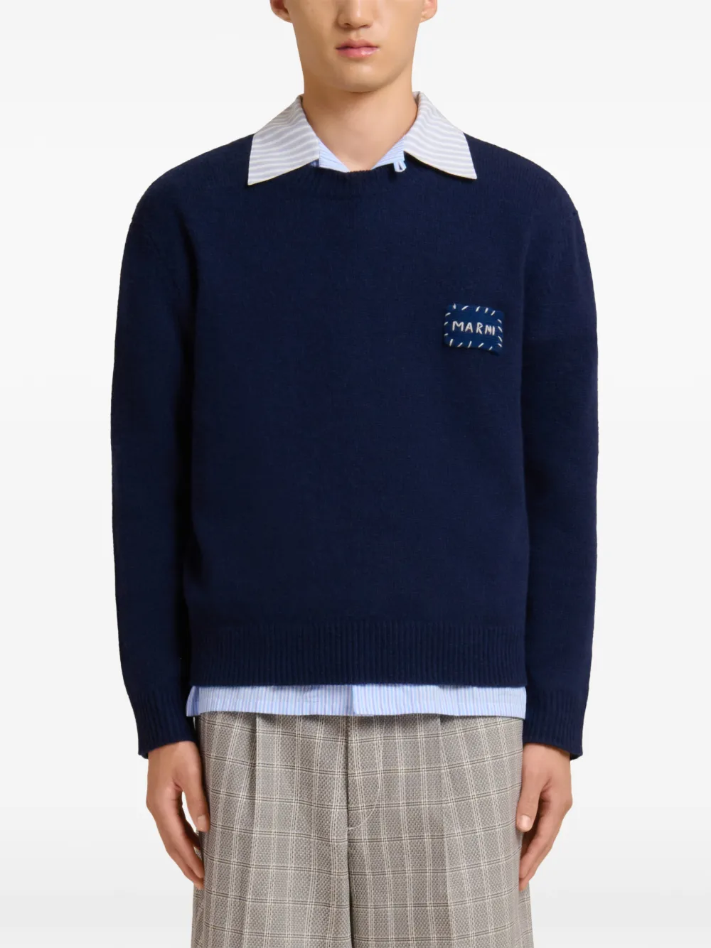 Свитер с круглым вырезом и нашивкой-логотипом Marni, синий
