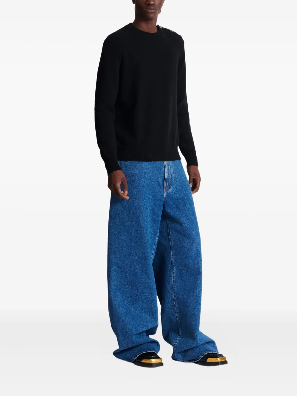 Кашемировый свитер на пуговицах Balmain, черный