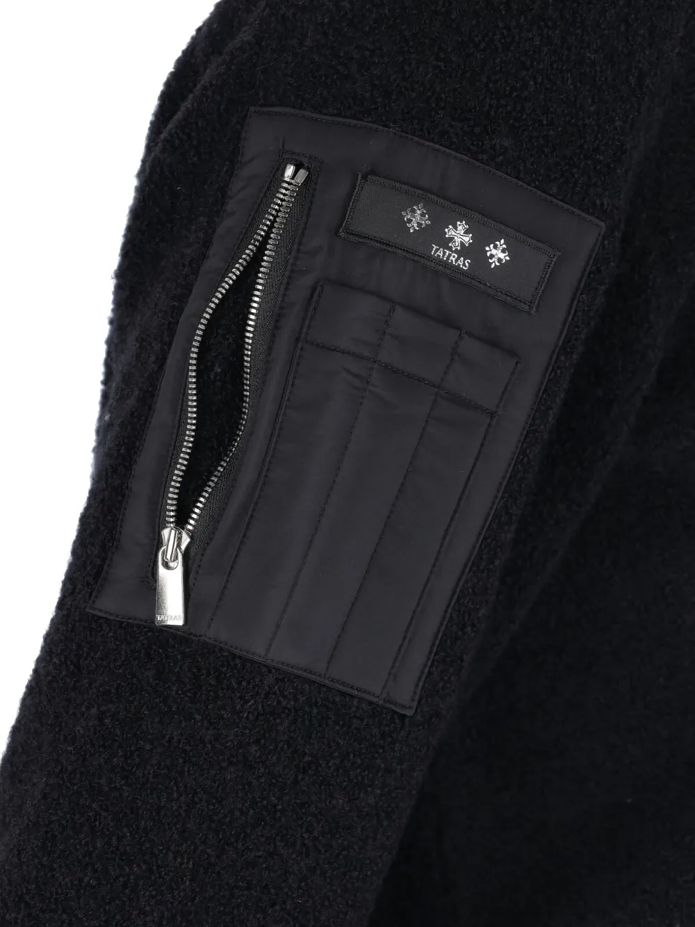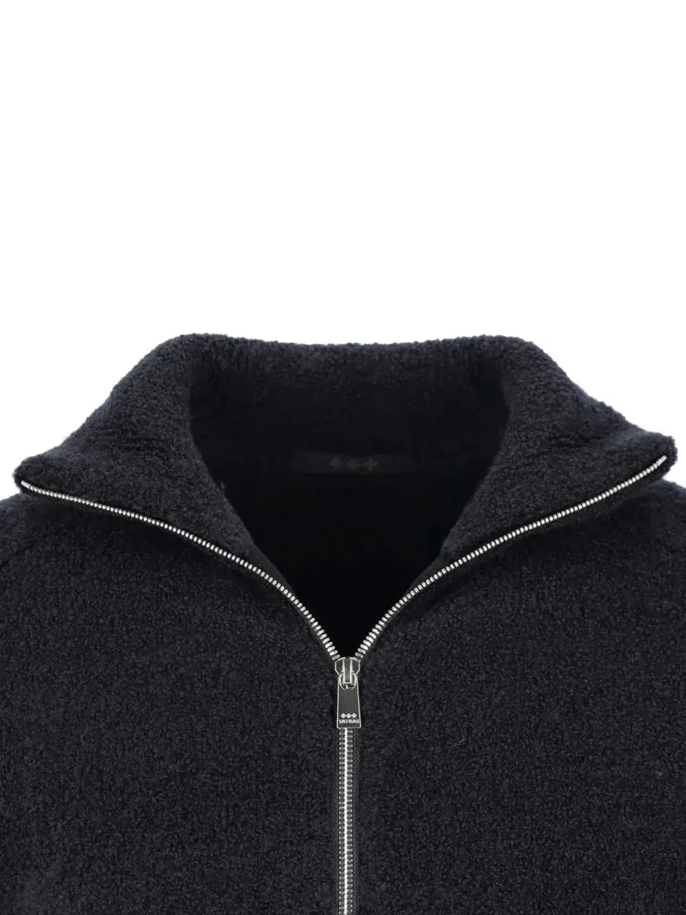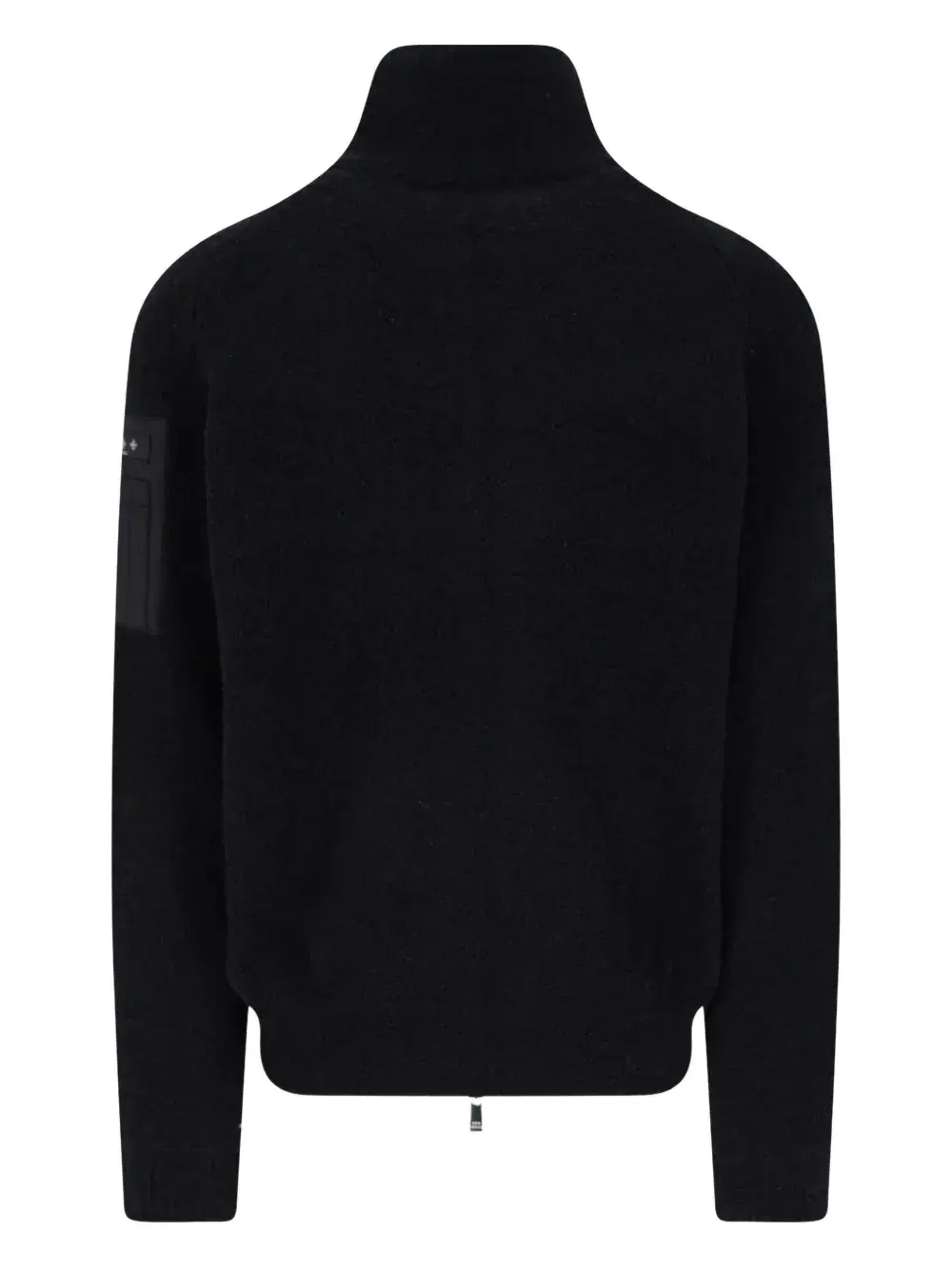 Черная куртка с застежкой на молнию, нашивками, высоким воротом и длинными рукавами