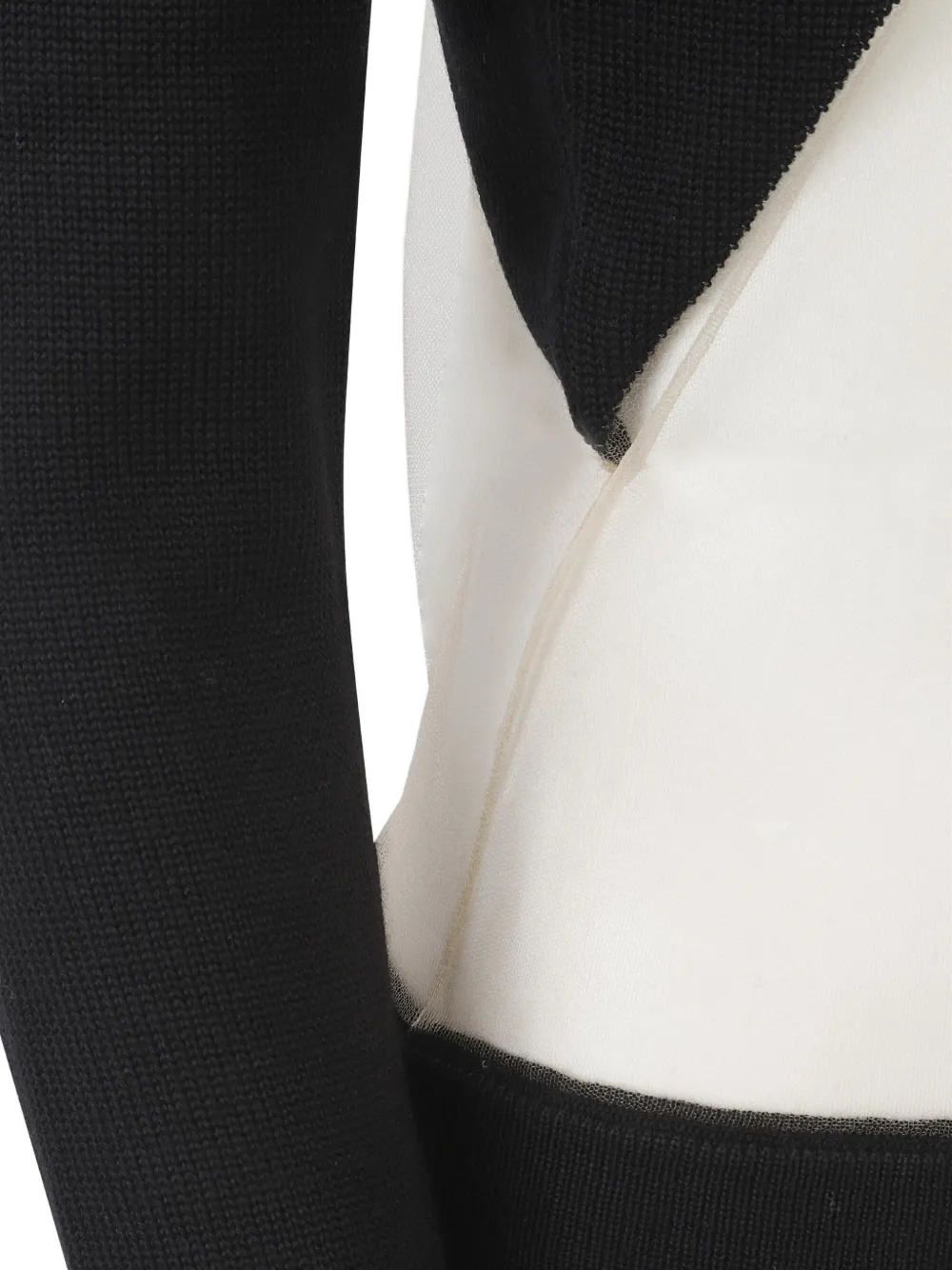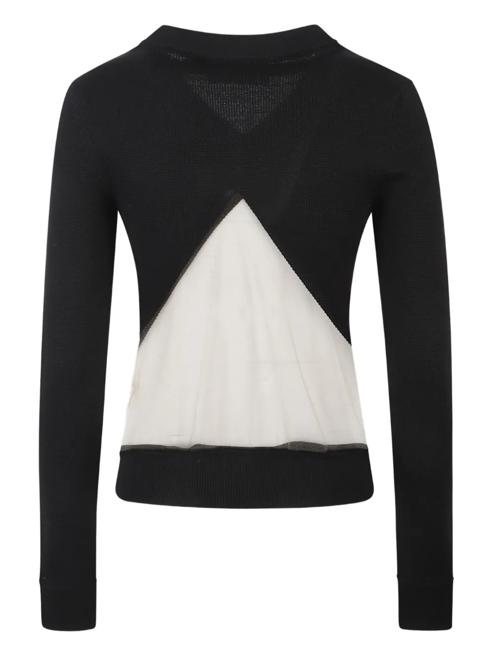 Черный вязаный топ с V-образным вырезом, треугольной деталью и длинными рукавами