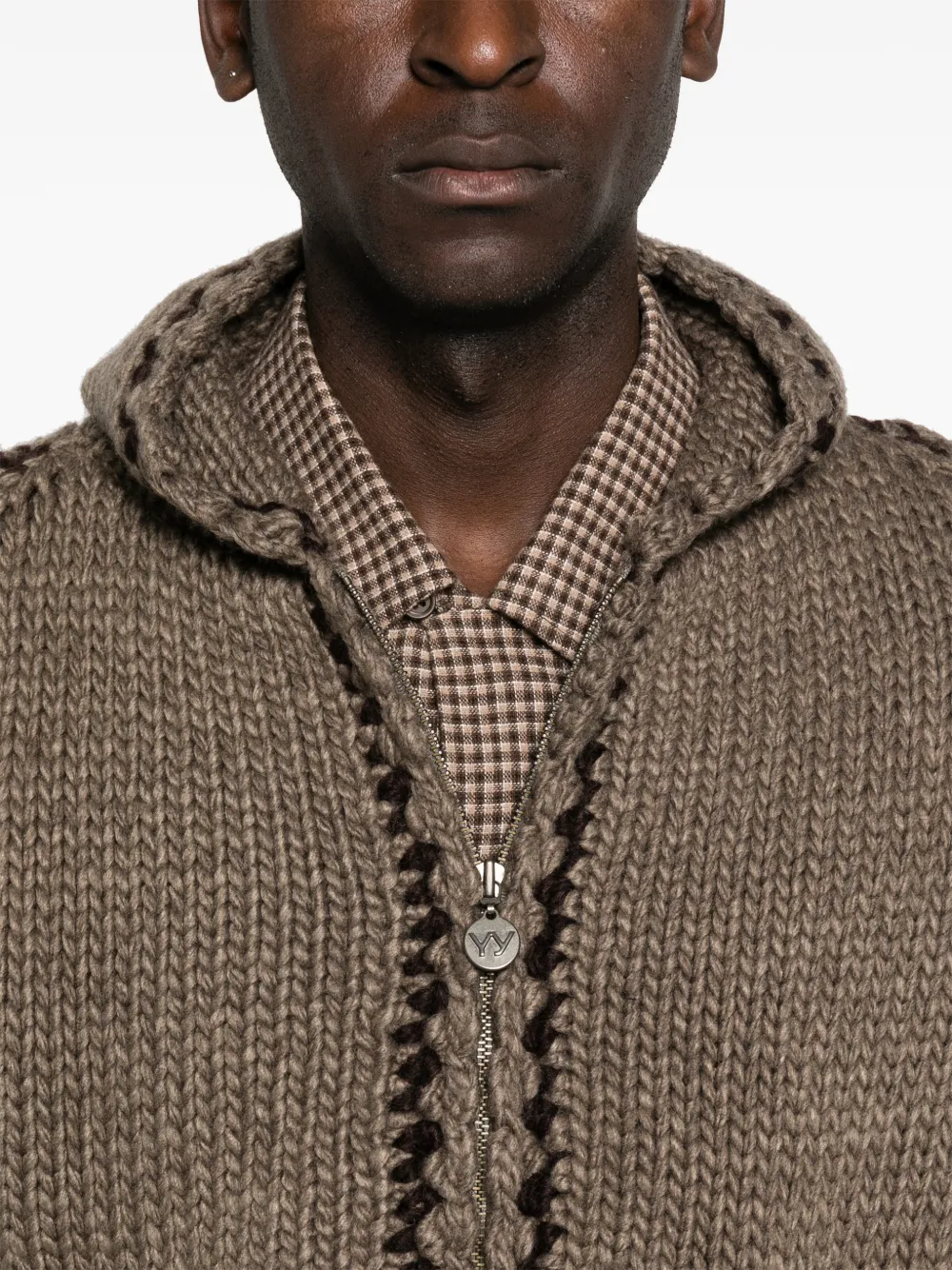 Кардиган на молнии с капюшоном и отделкой строчкой Open Yy, коричневый 26 928₽