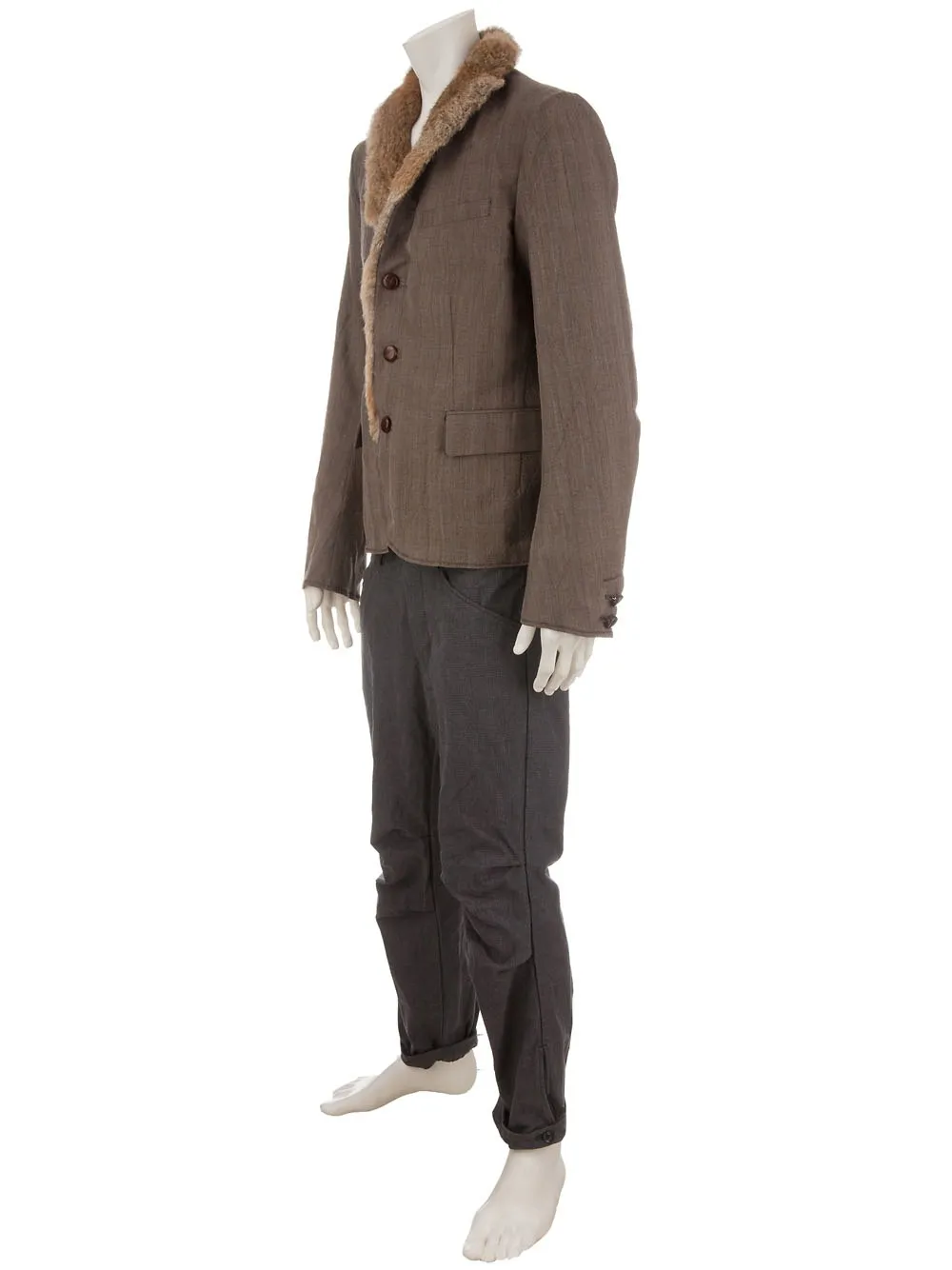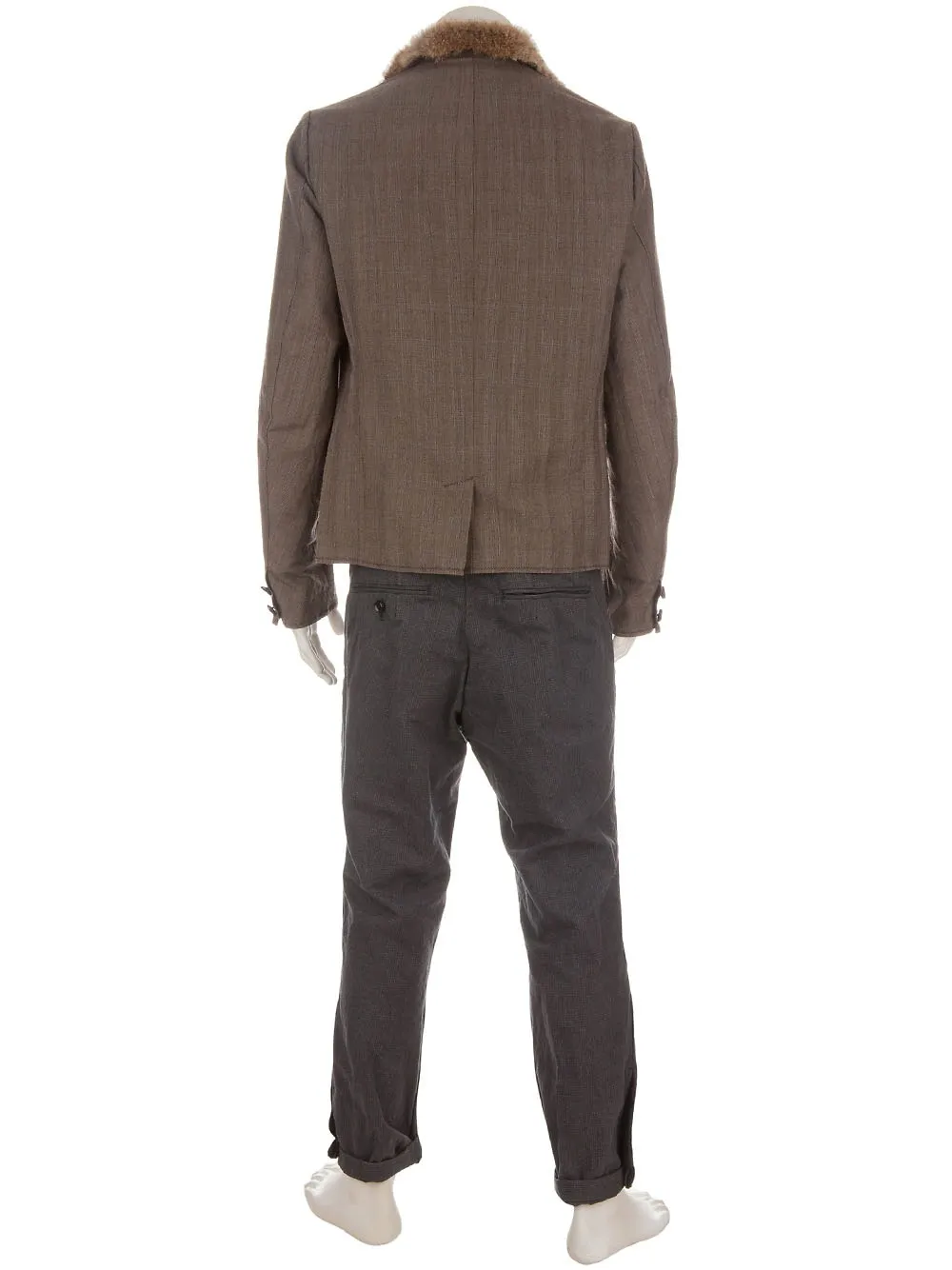 Grey straight-leg cotton trousers from Kolor featuring a front zip, a loop and strap front fastening, two front pockets, belt loops and slit back pockets of which one is buttoned.