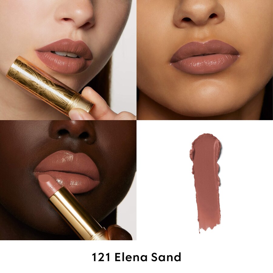 Что еще нужно знать: 36 оттенков варьируются от нюдовых до красных и розовых с нюансами оранжевого и фиолетового, а также один насыщенный черный оттенок. Помада Rouge à Lèvres Satin, упакованная в роскошный золотистый корпус, украшена декоративным рисунком Алессандро Микеле, вдохновленным стилем ар-деко.