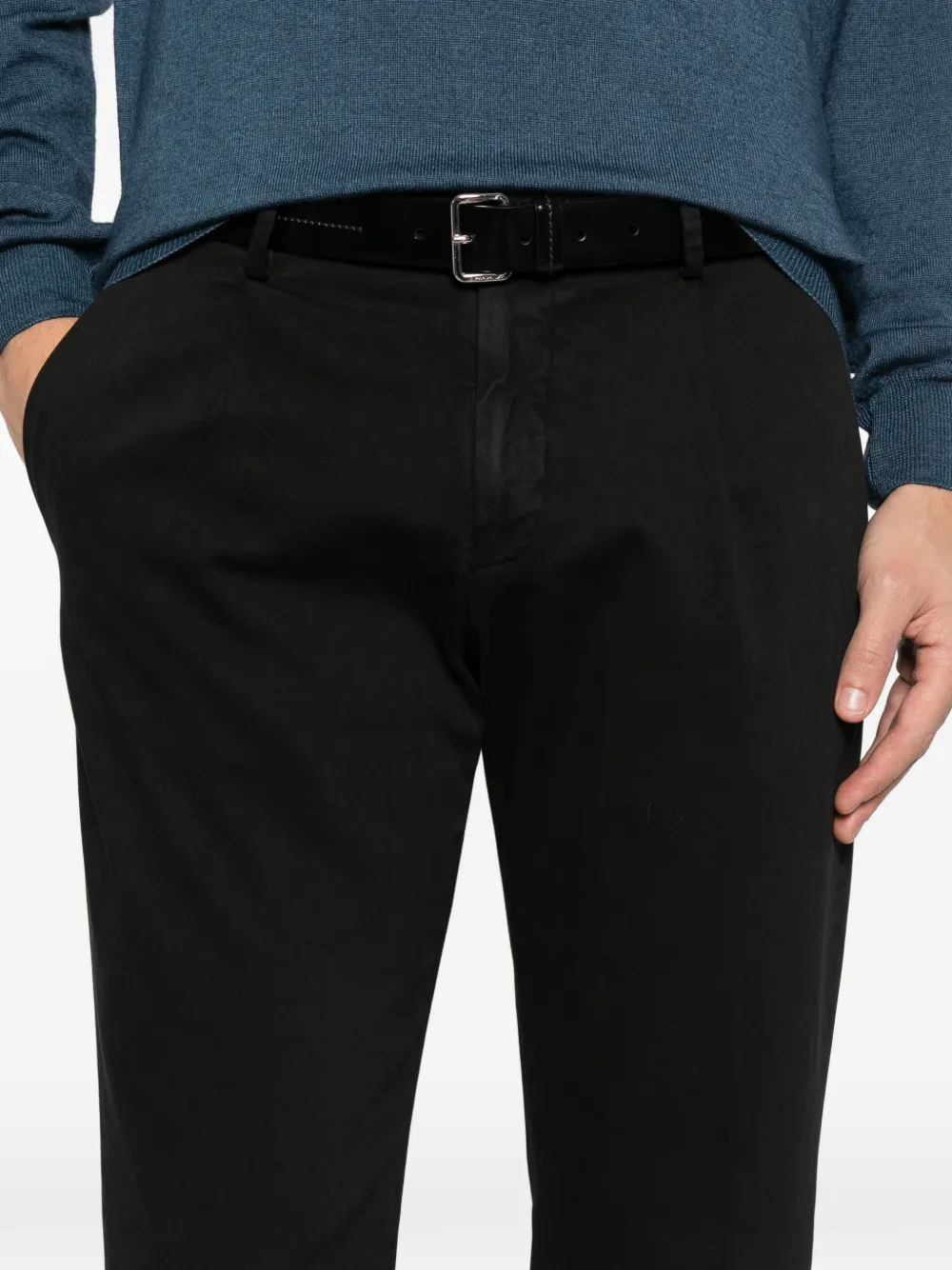 Чёрные шлёвки для ремня, складки, боковые карманы
