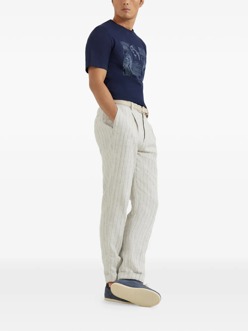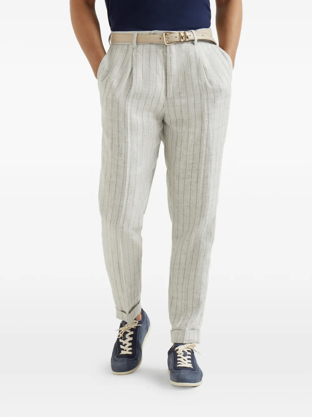 Брюки в полоску со складками Brunello Cucinelli, серый